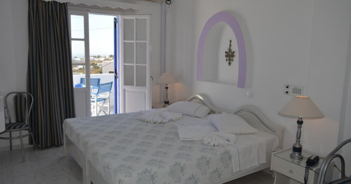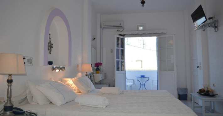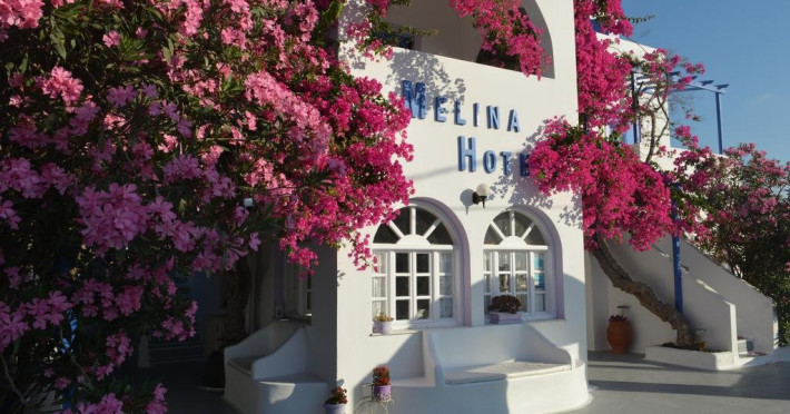 Descriere HOTEL MELINA:Este un hotel construit in stilul arhitectural traditional cicladic, cochet, ce beneficiaza de o localizare excelenta in capitala insulei, Fira.