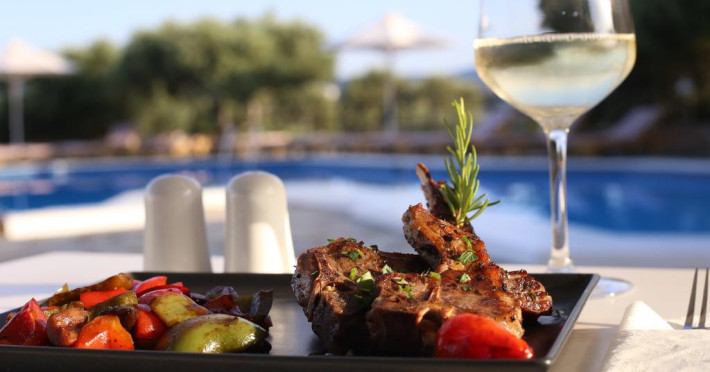 La Meliti Hotel oaspeții au la dispoziție un restaurant care servește mâncare în stil bufet. Masa poate fi servită atât în interior, cît si în aer liber, pe terasă, în funcție de vreme. Oaspeţii pot avea diverse băuturi răcoritoare sau alcoolice la bar. În cadrul proprietății există și un snack bar care servește băuturi și gustări.