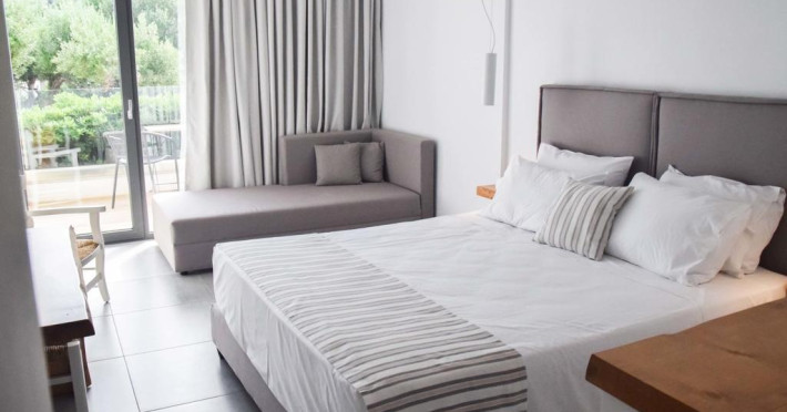Sunt disponibile 42 camere. În camere există baie cu cadă sau duș ce are în dotare foehn și articole de toaletă gratuite. Unele camere au balcon cu vedere la grădină sau la piscină. Oaspeții au la dispoziție serviciul de room service pentru a servi masa sau diverse băuturi. Camerele confortabile de la Meliti Hotel au pardoseală de gresie/ marmură, aer condiționat, Tv cu canale prin satelit și seif. Oaspeții au acces gratuit la serviciul Wi-fi în camere. Curățenia in cameră se face zilnic. Fiecare unitate de cazare are frigider.
