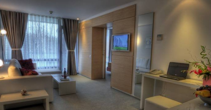 Camere: Toate camerele sunt dotate cu balcon, un pat matrimonial sau cu 2 paturi tip twin. Camerele sunt mochetate, dotate cu yala magnetica, economizor, minibar, seif, TV LCD (cablu 65 programe), telefon, uscator de par, instalatie de climatizare. Toate camerele au in dotarile bailor cabina de dus. Accesul la internet (wireless) este gratuit.