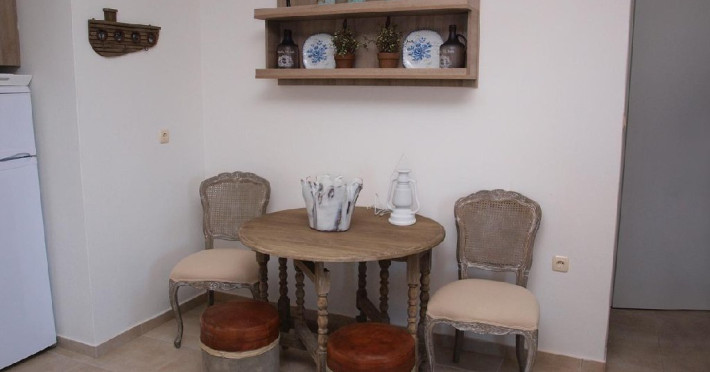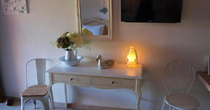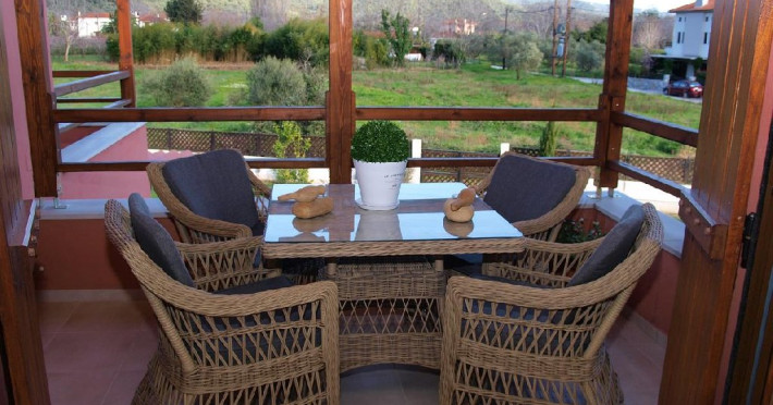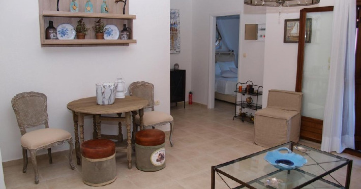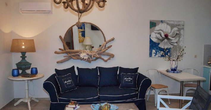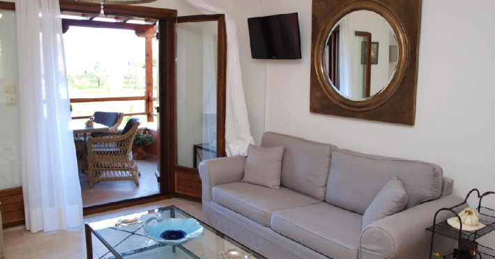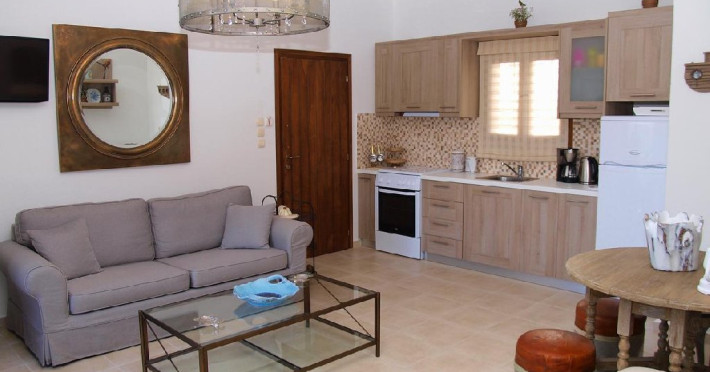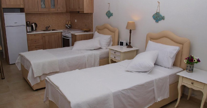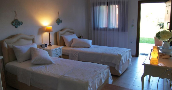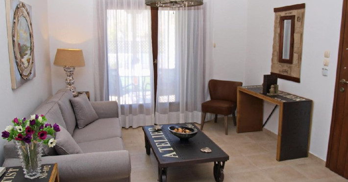 Facilitati camere: Camerele sunt noi, moderne foarte confortabile,decorate in culori calde si placute. Autonomia si decorul sunt punctele dominante ale apartamentelor. Eleganta si luxul ii ajuta pe oaspeti sa se relaxeze si se bucure de vacanta, iar interventiile artistice din decoruri amintesc de finetea clasica italiana in combinatie cu nuantele palide, dar calde care ajuta ochii sa uite de cotidian si sa experimenteze linistea din mediul rural grecesc.