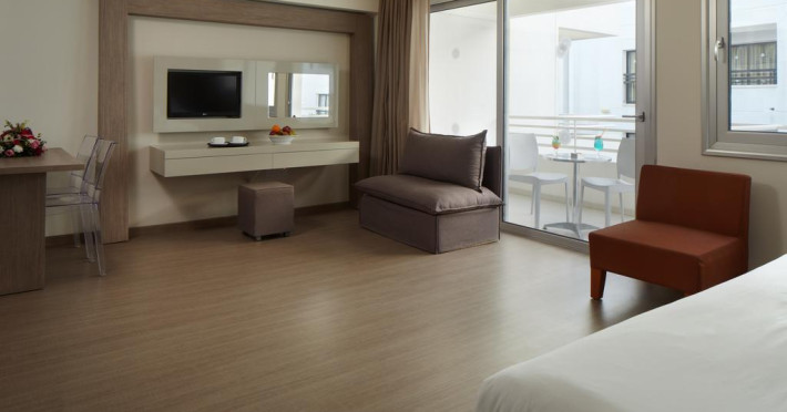Sunt disponibile 172 camere. Fiecare cameră oferă cană-fierbător și mașină pentru prepare cafea sau ceai. Oaspeții pot solicita serviciul de room service pentru a servi masa sau diverse băuturi. Unele camere au balcon, cu vedere la piscină, unde oaspeții se pot relaxa în voie. Camerele luminoase de la Melpo Antia Luxury Apartments And Suites sunt dotate cu parchet, aer condiționat, Tv cu canale prin satelit și seif. În camere există baie cu cadă sau duș ce are în dotare foehn și articole de toaletă gratuite. Oaspeții au acces gratuit la serviciul Wi-fi în camere. Curățenia in cameră se face zilnic. Proprietatea oferă camere pentru familie cu o suprafață mai mare și un număr mai mare de paturi față de cele standard. Se pot rezerva de asemenea camere pentru nefumători.