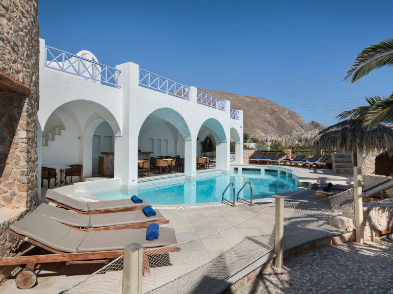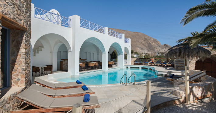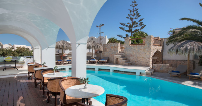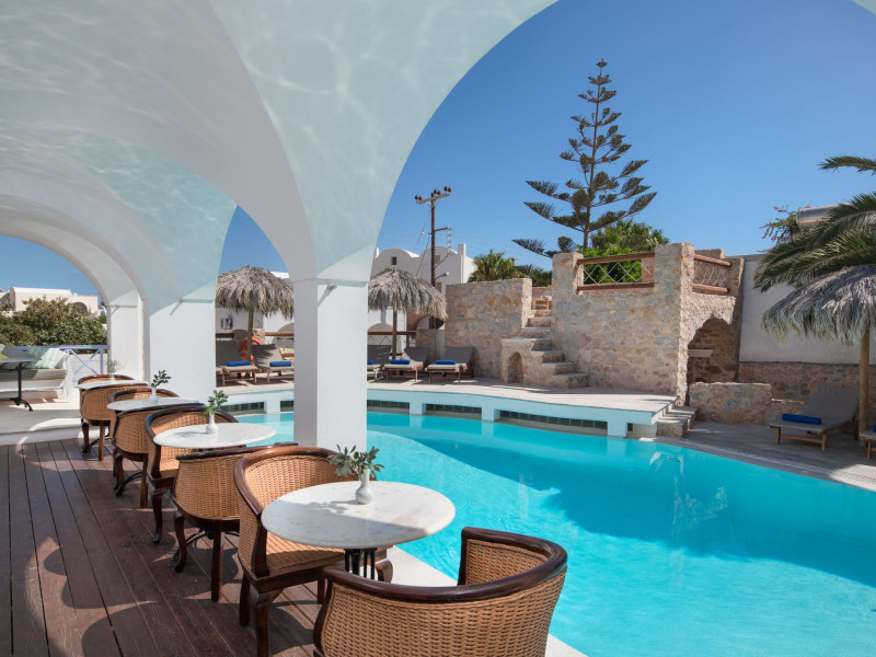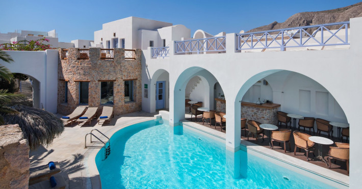On the picturesque island of Santorini, in the sunny village of Perissa and only 30 meters away from the famous 10 km black sandy beach is located the Meltemi Suites hotel, built in 2003. I can be reserved ONLY for couples.The architecture of this building combines the typical Cycladic style with modern design.The 16 apartments and suites have been decorated by an experienced team of architects who gave each room an individual character.All rooms of Meltemi Suites provide the following facilities:Air-condition, satellite-TV, kitchenette (in studios, suites, Honeymoon Suites & VIP studio), refrigerator and mini-bar, bath or shower, hair dryer, some of them have on their balcony a private Jacuzzi (VIP studio & Honeymoon Suites).The Meltemi hotel offers a variety of facilities as following:24 hours reception, swimming pool, breakfast room (buffet breakfast), snack-bar, cocktail-bar, safe boxes, internet access, fax & photocopy - service, car and bike rental service, private parking place, laundry and ironing service (on charge).Additionally the Meltemi Suites, gives you the opportunity to taste the local & international cuisine by visiting our two restaurants. The Meltemi Pizzeria – Tavern, near the beach and the Waterpark restaurant.On the picturesque island of Santorini, in the sunny village of Perissa and only 30 meters away from the famous 10 km black sandy beach is located the Meltemi Suites hotel, built in 2003. I can be reserved ONLY for couples.The architecture of this building combines the typical Cycladic style with modern design.The 16 apartments and suites have been decorated by an experienced team of architects who gave each room an individual character.All rooms of Meltemi Suites provide the following facilities:Air-condition, satellite-TV, kitchenette (in studios, suites, Honeymoon Suites & VIP studio), refrigerator and mini-bar, bath or shower, hair dryer, some of them have on their balcony a private Jacuzzi (VIP studio & Honeymoon Suites).The Meltemi hotel offers a variety of facilities as following:24 hours reception, swimming pool, breakfast room (buffet breakfast), snack-bar, cocktail-bar, safe boxes, internet access, fax & photocopy - service, car and bike rental service, private parking place, laundry and ironing service (on charge).Additionally the Meltemi Suites, gives you the opportunity to taste the local & international cuisine by visiting our two restaurants. The Meltemi Pizzeria – Tavern, near the beach and the Waterpark restaurant.