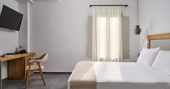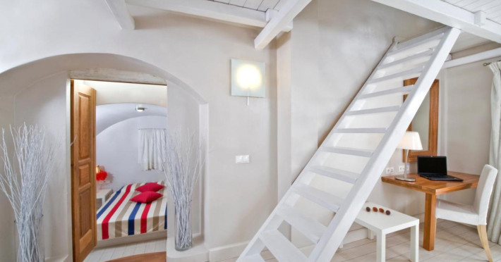 The rooms, built in Cycladic style, with comfortable spaces, built furniture and cosy atmosphere, compose the warmth of the unique hospitality of Santorini.