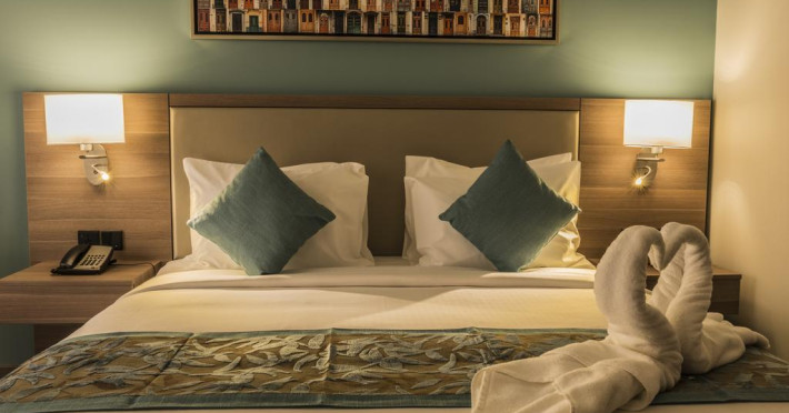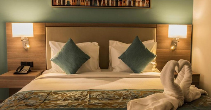 Sunt disponibile 90 camere. Camerele luminoase de la Mena Plaza Hotel sunt dotate cu mochetă, aer condiționat, Tv și seif. Fiecare cameră dispune de minibar și cană-fierbător. Oaspeții pot solicita serviciul de room service pentru a servi masa sau diverse băuturi. În camere există baie cu cadă sau duș prevăzută cu foehn. Oaspeții au acces gratuit la serviciul Wi-fi în camere. Curățenia in cameră se face zilnic. Toate camerele spațioase de la Mena Plaza Hotel au zonă de relaxare cu canapea, ceea ce oferă un plus de confort. Proprietatea oferă camere pentru familie cu o suprafață mai mare și un număr mai mare de paturi față de cele standard. Se pot rezerva de asemenea camere pentru nefumători.