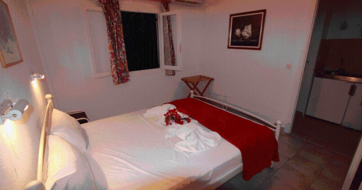 În camere există baie cu cadă sau duș prevăzută cu foehn. Fiecare cameră oferă cană-fierbător și mașină pentru prepare cafea sau ceai. Oaspeții pot solicita serviciul de room service pentru a servi masa sau diverse băuturi. Camerele confortabile de la Menigos Resort au pardoseală de gresie/ marmură, aer condiționat, Tv cu canale prin satelit și seif. Unele camere au balcon cu vedere la mare sau la grădină. Oaspeții au acces gratuit la serviciul Wi-fi în camere. Curățenia in cameră se poate asigura zilnic, contra cost. Fiecare unitate de cazare include o chicinetă utilată cu frigider, plită de gătit și ustensile de bucătărie. De asemenea, sunt disponibile o zonă de luat masa și un cuptor cu microunde. Proprietatea oferă camere pentru familie cu o suprafață mai mare și un număr mai mare de paturi față de cele standard. Se pot rezerva de asemenea camere pentru nefumători.