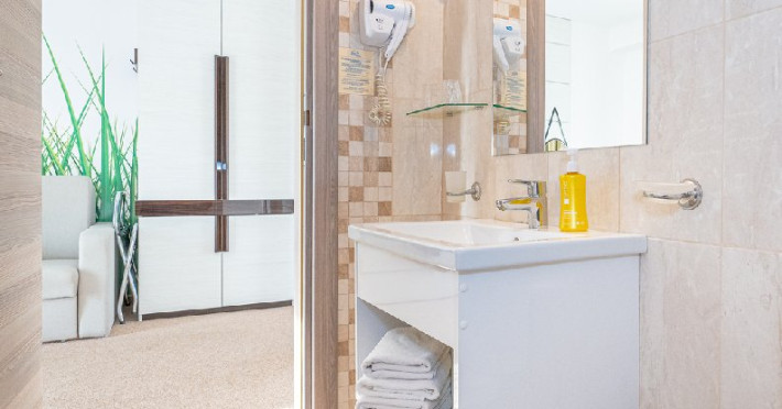 Facilitati: internet, TV LCD, aer conditionat, cartela de acces,telefon, minibar, seif, cabina de dus, uscator de par, cosmetice, balcon, uscator de rufe. Capacitate maxima: 2 adulti + 2 copii sau 3 adulti.