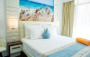Camera Dubla King cu Jacuzzi cu o suprafata de aproximativ 20 mp, pat matrimonial (180/190cm) si canapea extensibila (140/190 cm), sistem de acces in camera pe baza de cartela/bratara, AC, TV, telefon, seif, baie cu cabina de dus, uscator de par, cosmetice hoteliere, prosoape de plaja, terasa cu jacuzzi, minibar contra cost. Acest tip de camera nu suporta adaugarea unui pat suplimentar. Camera dubla king poate gazdui 2 adulti si 2 copii sau 3 adulti.