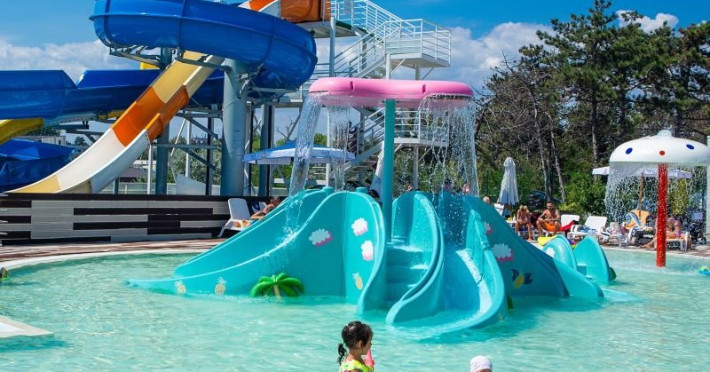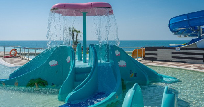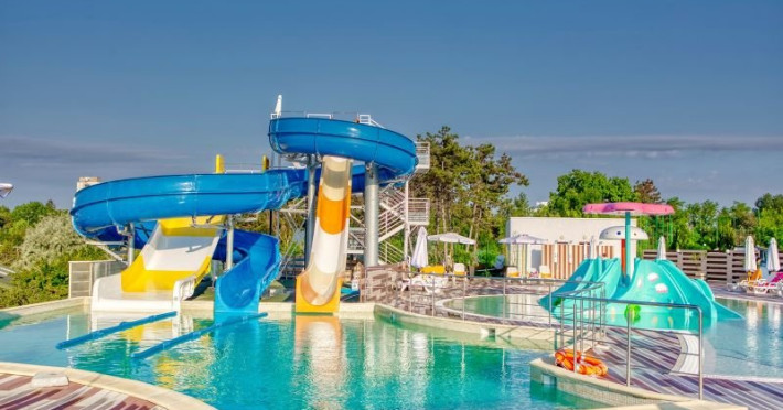 Atractii acvatice de la Mera Onix, unde ai la dispozitie o piscina Infinity cu hidromasaj pentru relaxare si tobogane acvatice cu 3 niveluri de dificultate, pe care poti aluneca sub cerul liber, de la 4 sau de la 6 metri inaltime - ideale pentru o portie de adrenalina.
