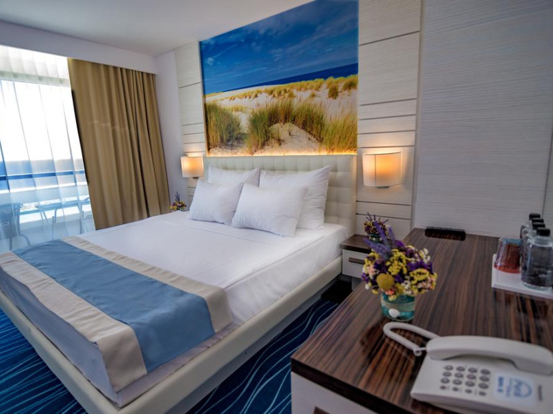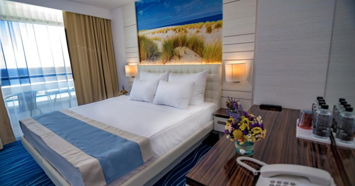 Near Jupiter Beach. Located in Cap Aurora, Mera Onix Cap Aurora is within a 15-minute walk of Jupiter Beach and Venus Beach. This upscale hotel is 1.3 mi (2.1 km) from Neptune Orthodox Church and 1.3 mi (2.2 km) from Hipodrom Mangalia. Make yourself at home in one of the 350 air-conditioned rooms featuring minibars and flat-screen televisions. Rooms have private balconies or patios. Complimentary wireless internet access keeps you connected, and cable programming is available for your entertainment. Private bathrooms with showers feature complimentary toiletries and hair dryers. All-inclusive rates are available at this hotel. Meals and beverages at onsite dining establishments are included in all-inclusive rates. Charges may be applied for dining at some restaurants, special dinners and dishes, some beverages, and other amenities. You can enjoy a meal at the restaurant serving the guests of Mera Onix Cap Aurora, or stop in at the snack bar/deli. Relax with a refreshing drink at the beach bar, the poolside bar, or one of 2 bars/lounges. A complimentary buffet breakfast is served daily from 7 AM to 9:30 AM. Pamper yourself with a visit to the spa, which offers facials. After dipping into one of the 3 outdoor swimming pools, you can spend some time at the private beach. Additional features at this hotel include complimentary wireless internet access, an arcade/game room, and a television in a common area.