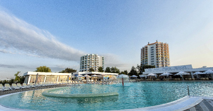 Mera Resort Venus asigur peste 800 de locuri in cele 440 de spatii de cazare, dispuse in 2 hoteluri, Mera Sky si Mera Blue si ansamblul de vile Mera Villas. Cele 2 hoteluri sunt conectate printr-o receptie comun, un spatiu larg, modern si rafinat, unde stilul si eleganta sunt in stransa legatur cu preocuparea permanenta a intregii echipe Mera pentru confortul si buna dispozitie a oaspetilor sai.Mera Resort va ofera posibilitatea de a trai experienta all-inclusive! Totul este inclus: bauturi si mancarea cu specific local si international, atractii pentru copii, entertainment. Complexul dispune de restaurant, baruri,piscina Mera ( dispune de dusuri cervicale, gheizere, aqua vortex , zone speciale de inot, aquapark pt copii) , mini club-programe pentru copii si loc de joaca, parcare proprie gratuita, (in limita disponibilitatii locurilor).
