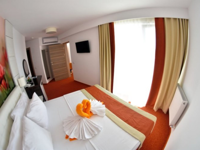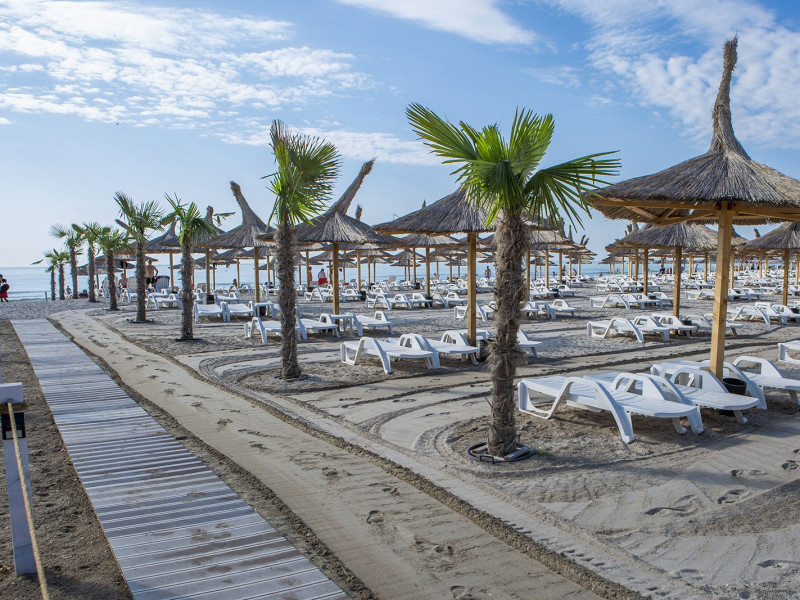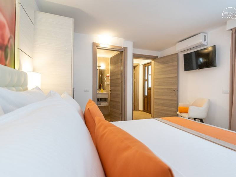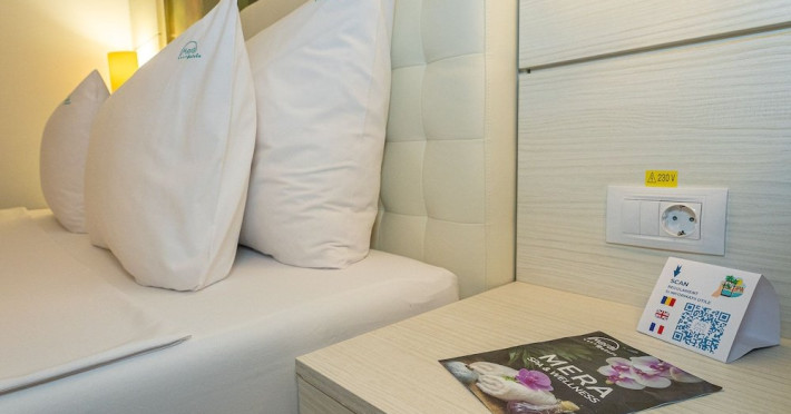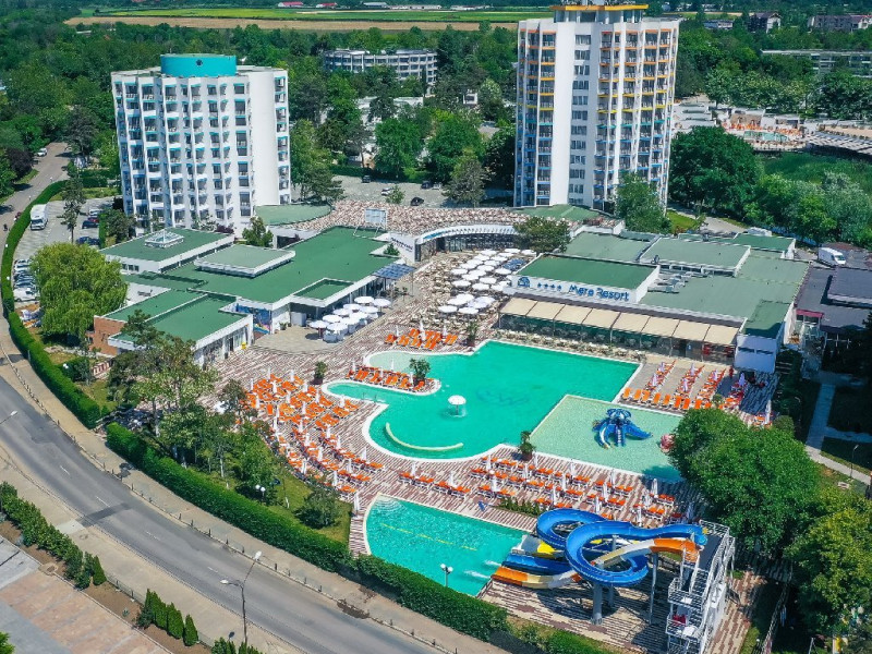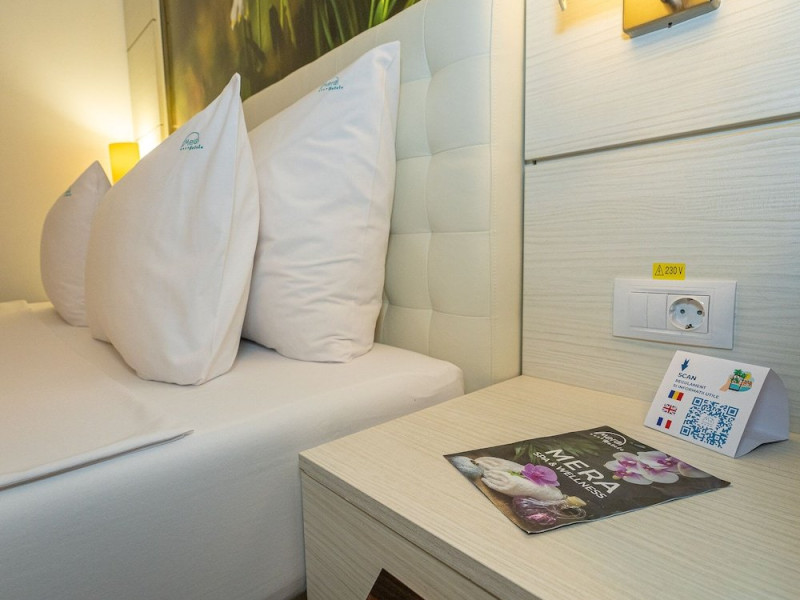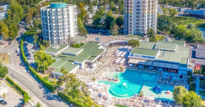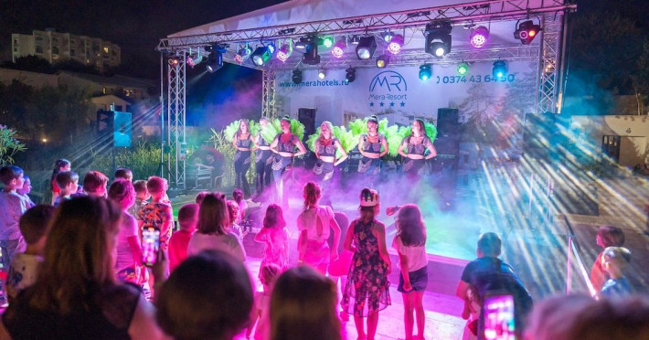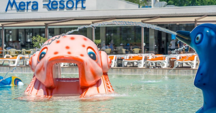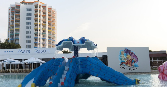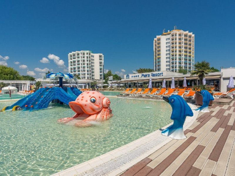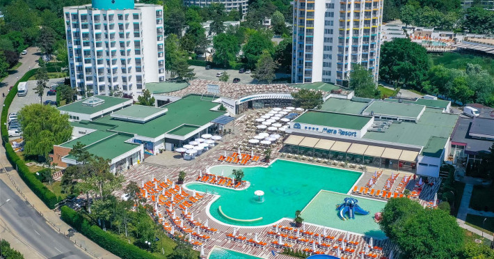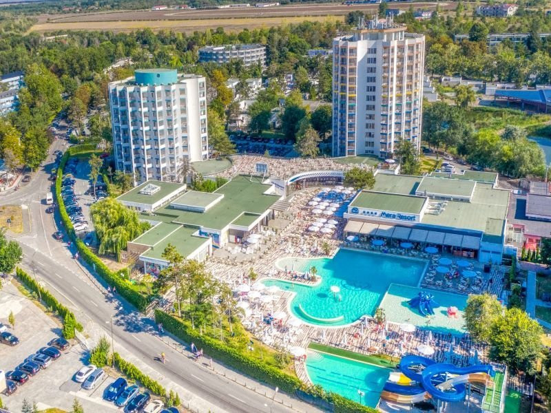 Hotelul Mera Resort dispune de plaja privata. HOTEL MERA RESORT VENUS este alcatuit din 2 corpuri de hotel - Mera Sky si Mera Blue - si un complex de 49 de vile cu accente mediteranene - Mera Villas. Cele 2 hoteluri sunt conectate printr-o receptie comuna, un spatiu larg, modern si rafinat, unde stilul si eleganta sunt in stransa legatura cu preocuparea permanenta a intregii echipe Mera pentru confortul si buna dispozitie a oaspetilor sai. Resortul este situat in centrul statiunii, la 100 m distanta de plaja Venus. Cazarea se efectueaza incepand cu ora 13:00, iar eliberarea camerelor se realizeaza pana cel tarziu la ora 11:00. Nu se accepta animale de companie. Fumatul este interzis in incinta Resortului, exceptand balcoanele camerelor si spatiile special amenajate. Va informam ca incepand cu sezonul 2021 se va incasa la check-in taxa de statiune, in valoare de 5 lei/ persoana/ zi, conform HCL 283/23.12.2020. Vor fi taxate toate persoanele cu varsta de 18 ani impliniti. Dotari si servicii Piscina principala exterioara - este una dintre cele mai frumoase din zona, avand o suprafata de 1000 mp si un design modern. Va puteti relaxa pe sezlongruile confortabile de pe marginea piscinei sau puteti profita de nenumaratele atractii acvatice: dusurile cervicale, banchetele cu hidromasaj si gheizerele, precum si Aqua vortex - acesta este special gandit pentru doritorii de senzatii tari, permite inotatorilor rezistenti sa mearga impotriva curentului sau pur si simplu sa se lase trasi de flux. Piscina pentru copii - are o adancime de 50 cm si este dotata cu un mini Aqua Park, detine o piscina cu tobogane acvatice cu 3 canale pentru cei mari. Piscina pentru copii este special amenajata astfel incat activitatile desfasurate sa beneficieze de cele mai inalte standarde de siguranta. La piscine se desfasoara pe tot parcursul zilei diverse programe: aqua gym, concursuri, spectacole si alte surprize. Piscinele secundare - ale resortului sunt situate in zona Mera Villas, o adevarata oaza de liniste, fiind optiunea ideala pentru a-ti petrece zilele insorite de vara intr-o atmosfera relaxanta. Rasfatul unei zile la piscina este o experienta in sine. Accesul este permis intre orele 08:00 - 20:00 Plaja Mera Resort - este situata la aproximativ 500 m avand nisip fin, apa curata si intrare lina in mare, dispunand de beach bar gratuit. Oaspetii Mera Resort au la dispozitie in mod gratuit sezlonguri, umbrele si masute la plaja, in limita locurilor disponibile. Restaurant - Cum experienta turistica nu poate fi niciodata completa fara a integra si latura ei culinara, restaurantele Mera Resort si Mera Villas va ofera in regim All Incluisve o gama diversificata de preparate, atat din bucataria traditional romaneasca, cat si din cea internationala. Maestrii laboratorului propriu de patiserie va vor delecta cu cele mai proaspete si gustoase produse. Pe terasa zonei centrale a complexului este amplasat barul a la carte unde va veti putea delecta, contra cost, cu o gama larga de bauturi si cocktail-uri. Parcare gratuita - cu aproximativ 450 de locuri de parcare. Locurile de parcare nu pot fi rezervare, acestea se aloca in limita disponibilitatii, resortul nu garanteaza locul de parcare.Accesul autoturismelor in parcarile Mera Hotels va fi posibil incepand cu ora 13:00. Centrul SPA Wellness Mera Resort - este zona in care iti poti rasfata toate simturile. Aici poti sa te relaxezi in saloanele de masaj si de infrumusetare, piscina interioara, in aburul de miresme imbietoare al saunei si al hammamului sau in sala de fitness dotata cu aparatura moderna. Mera Spa Wellness se intinde pe aproximativ 800 mp si este impartit in 3 zone: Wellness, Pool Thermarium si Fitness ( cu vedere la gradina Zen). Zona Wellnes cuprinde un cabinet de masaj single, un cabinet suite ( pentru terapii in cuplu), prevazut cu cada de hidromasaj dubla, cu cromoterapie si ozonoterapie, precum si dus tropical cu cascada. Cabinetul de infrumusetare este dotat cu pat electric cu masaj si infrarosii, aparat cu oxygen hiperbaric pentru terapii faciale si corporale. Zona Pool Thermarium are in componenta piscina incalzita (>28 grade) cu o suprafata de 80 mp si o adancime de 140 cm, cu cascade cervicale si inot impotriva curentului, dusuri emotionale, fantana de gheata, bazine Kneipp cu cascade cervicale ( apa are o temperatura de 17, respectiv 35 grade), sauna finlandeza ( uscata), baie de vapori ( sauna umeda), bio-sauna ( o alternativa moderna a Finish saunei), salina cu sare de Himallaya, hammam ( Ceremonial turcesc/ Ritual marocan). Toate serviciile oferite in Centru Spa Wellness sunt contra cost. Kids Club Kids Park - Mera Resort a pregatit pentru cei mai mici oaspeti ai sai o serie de experiente incantatoare, punandu-le la dispozitie alte doua spatii destinate exclusiv lor: loc de joaca in interior si un parc in aer liber, unde se pot bucura de o multime de jocuri si activitati. Printre activitatile ce se desfasoara pe parcursul intregii zile in aceste zone, amintim teatru pentru copii, parada si momente unice oferite de personajele Disney. Programul Artistic Mera - Terasa restaurantului este animata in fiecare seara de nenunmarate momente artistice, atat pentru copii, cat si pentru adulti. La Mera Resort aveti ocazia de a petree cele mai antrenante seri de vara, bucurandu-va de muzica live, dansatori salsa, ansambluri populare, cabaret, alaturi de multi ati invitati si momente-surpriza. Cu pasiune si dedicare, in fiecare an, Mera Resort da tonul bunei dispozitii estivale si va asteapta sa reveniti, de fiecare data cu aceeasi bucurie, pentru a compune impreuna cele mai frumoase povesti de vacanta. Programul de entertainment de pe Terasa Restaurantului Mera se va desfasura zilnic intre orele 19:00 - 22:30. Servicii masa: - masa se serveste in restaurantul propriu in sistem bufet suedez. In incinta restaurantului, accesul este permis doar cu o tinuta decenta, fara obiecte si accesorii de plaja. Programul de functionare al barului a la carte din zona piscin