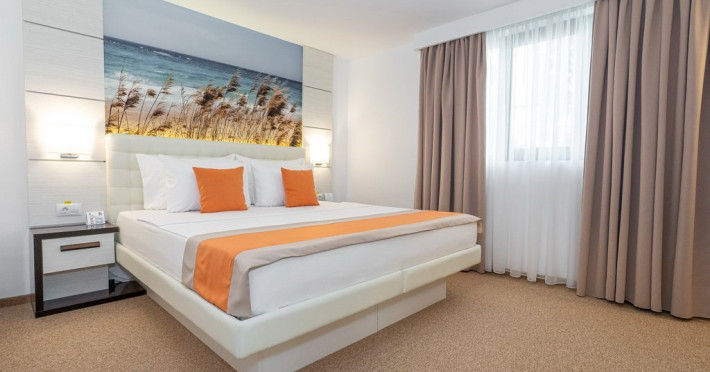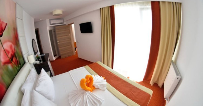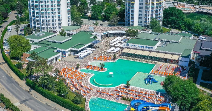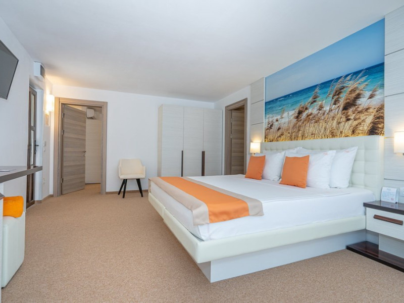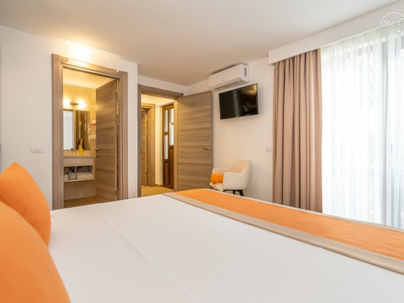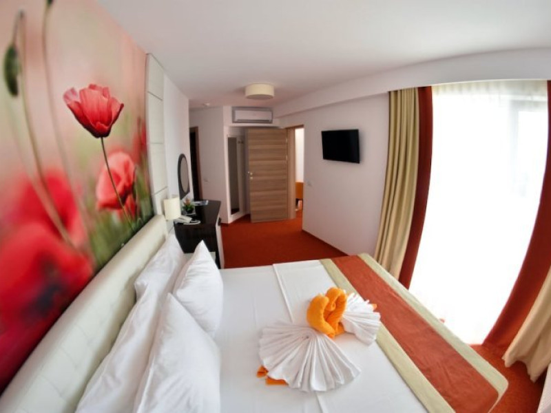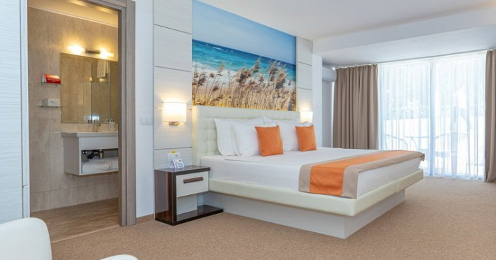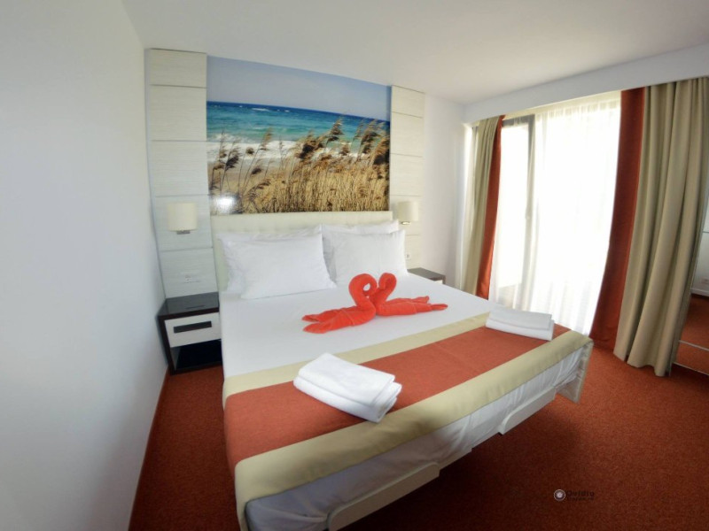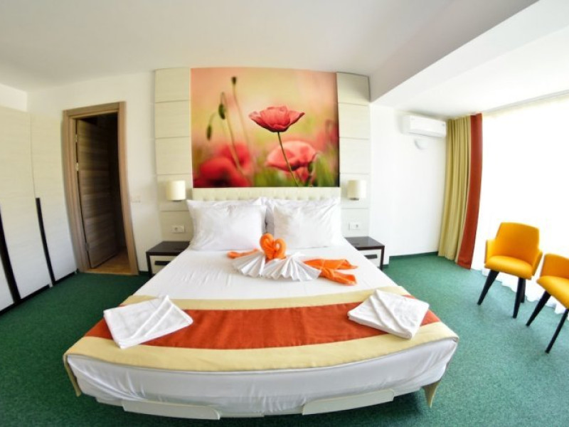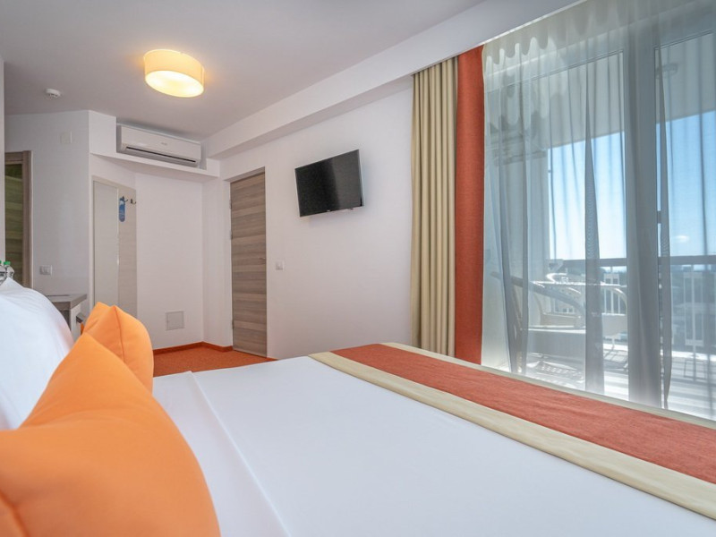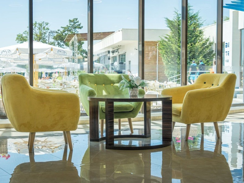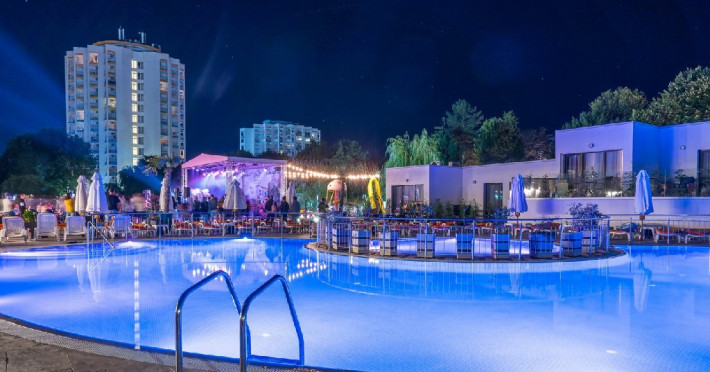 Hotelul Mera Resort dispune de plaja privata. HOTEL MERA RESORT VENUS este alcatuit din 2 corpuri de hotel - Mera Sky si Mera Blue - si un complex de 49 de vile cu accente mediteranene - Mera Villas. Cele 2 hoteluri sunt conectate printr-o receptie comuna, un spatiu larg, modern si rafinat, unde stilul si eleganta sunt in stransa legatura cu preocuparea permanenta a intregii echipe Mera pentru confortul si buna dispozitie a oaspetilor sai. Resortul este situat in centrul statiunii, la 100 m distanta de plaja Venus. Cazarea se efectueaza incepand cu ora 13:00, iar eliberarea camerelor se realizeaza pana cel tarziu la ora 11:00. Nu se accepta animale de companie. Fumatul este interzis in incinta Resortului, exceptand balcoanele camerelor si spatiile special amenajate. Va informam ca incepand cu sezonul 2021 se va incasa la check-in taxa de statiune, in valoare de 5 lei/ persoana/ zi, conform HCL 283/23.12.2020. Vor fi taxate toate persoanele cu varsta de 18 ani impliniti. Dotari si servicii Piscina principala exterioara - este una dintre cele mai frumoase din zona, avand o suprafata de 1000 mp si un design modern. Va puteti relaxa pe sezlongruile confortabile de pe marginea piscinei sau puteti profita de nenumaratele atractii acvatice: dusurile cervicale, banchetele cu hidromasaj si gheizerele, precum si Aqua vortex - acesta este special gandit pentru doritorii de senzatii tari, permite inotatorilor rezistenti sa mearga impotriva curentului sau pur si simplu sa se lase trasi de flux. Piscina pentru copii - are o adancime de 50 cm si este dotata cu un mini Aqua Park, detine o piscina cu tobogane acvatice cu 3 canale pentru cei mari. Piscina pentru copii este special amenajata astfel incat activitatile desfasurate sa beneficieze de cele mai inalte standarde de siguranta. La piscine se desfasoara pe tot parcursul zilei diverse programe: aqua gym, concursuri, spectacole si alte surprize. Piscinele secundare - ale resortului sunt situate in zona Mera Villas, o adevarata oaza de liniste, fiind optiunea ideala pentru a-ti petrece zilele insorite de vara intr-o atmosfera relaxanta. Rasfatul unei zile la piscina este o experienta in sine. Accesul este permis intre orele 08:00 - 20:00 Plaja Mera Resort - este situata la aproximativ 500 m avand nisip fin, apa curata si intrare lina in mare, dispunand de beach bar gratuit. Oaspetii Mera Resort au la dispozitie in mod gratuit sezlonguri, umbrele si masute la plaja, in limita locurilor disponibile. Restaurant - Cum experienta turistica nu poate fi niciodata completa fara a integra si latura ei culinara, restaurantele Mera Resort si Mera Villas va ofera in regim All Incluisve o gama diversificata de preparate, atat din bucataria traditional romaneasca, cat si din cea internationala. Maestrii laboratorului propriu de patiserie va vor delecta cu cele mai proaspete si gustoase produse. Pe terasa zonei centrale a complexului este amplasat barul a la carte unde va veti putea delecta, contra cost, cu o gama larga de bauturi si cocktail-uri. Parcare gratuita - cu aproximativ 450 de locuri de parcare. Locurile de parcare nu pot fi rezervare, acestea se aloca in limita disponibilitatii, resortul nu garanteaza locul de parcare.Accesul autoturismelor in parcarile Mera Hotels va fi posibil incepand cu ora 13:00. Centrul SPA Wellness Mera Resort - este zona in care iti poti rasfata toate simturile. Aici poti sa te relaxezi in saloanele de masaj si de infrumusetare, piscina interioara, in aburul de miresme imbietoare al saunei si al hammamului sau in sala de fitness dotata cu aparatura moderna. Mera Spa Wellness se intinde pe aproximativ 800 mp si este impartit in 3 zone: Wellness, Pool Thermarium si Fitness ( cu vedere la gradina Zen). Zona Wellnes cuprinde un cabinet de masaj single, un cabinet suite ( pentru terapii in cuplu), prevazut cu cada de hidromasaj dubla, cu cromoterapie si ozonoterapie, precum si dus tropical cu cascada. Cabinetul de infrumusetare este dotat cu pat electric cu masaj si infrarosii, aparat cu oxygen hiperbaric pentru terapii faciale si corporale. Zona Pool Thermarium are in componenta piscina incalzita (>28 grade) cu o suprafata de 80 mp si o adancime de 140 cm, cu cascade cervicale si inot impotriva curentului, dusuri emotionale, fantana de gheata, bazine Kneipp cu cascade cervicale ( apa are o temperatura de 17, respectiv 35 grade), sauna finlandeza ( uscata), baie de vapori ( sauna umeda), bio-sauna ( o alternativa moderna a Finish saunei), salina cu sare de Himallaya, hammam ( Ceremonial turcesc/ Ritual marocan). Toate serviciile oferite in Centru Spa Wellness sunt contra cost. Kids Club Kids Park - Mera Resort a pregatit pentru cei mai mici oaspeti ai sai o serie de experiente incantatoare, punandu-le la dispozitie alte doua spatii destinate exclusiv lor: loc de joaca in interior si un parc in aer liber, unde se pot bucura de o multime de jocuri si activitati. Printre activitatile ce se desfasoara pe parcursul intregii zile in aceste zone, amintim teatru pentru copii, parada si momente unice oferite de personajele Disney. Programul Artistic Mera - Terasa restaurantului este animata in fiecare seara de nenunmarate momente artistice, atat pentru copii, cat si pentru adulti. La Mera Resort aveti ocazia de a petree cele mai antrenante seri de vara, bucurandu-va de muzica live, dansatori salsa, ansambluri populare, cabaret, alaturi de multi ati invitati si momente-surpriza. Cu pasiune si dedicare, in fiecare an, Mera Resort da tonul bunei dispozitii estivale si va asteapta sa reveniti, de fiecare data cu aceeasi bucurie, pentru a compune impreuna cele mai frumoase povesti de vacanta. Programul de entertainment de pe Terasa Restaurantului Mera se va desfasura zilnic intre orele 19:00 - 22:30. Servicii masa: - masa se serveste in restaurantul propriu in sistem bufet suedez. In incinta restaurantului, accesul este permis doar cu o tinuta decenta, fara obiecte si accesorii de plaja. Programul de functionare al barului a la carte din zona piscin