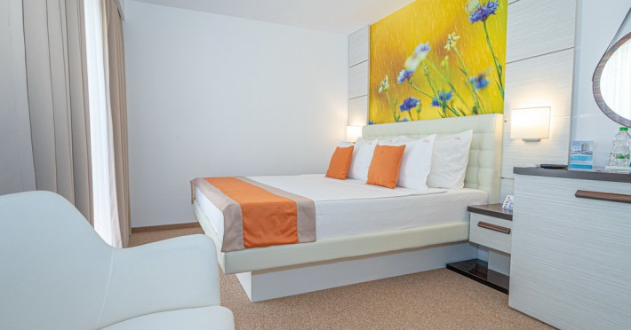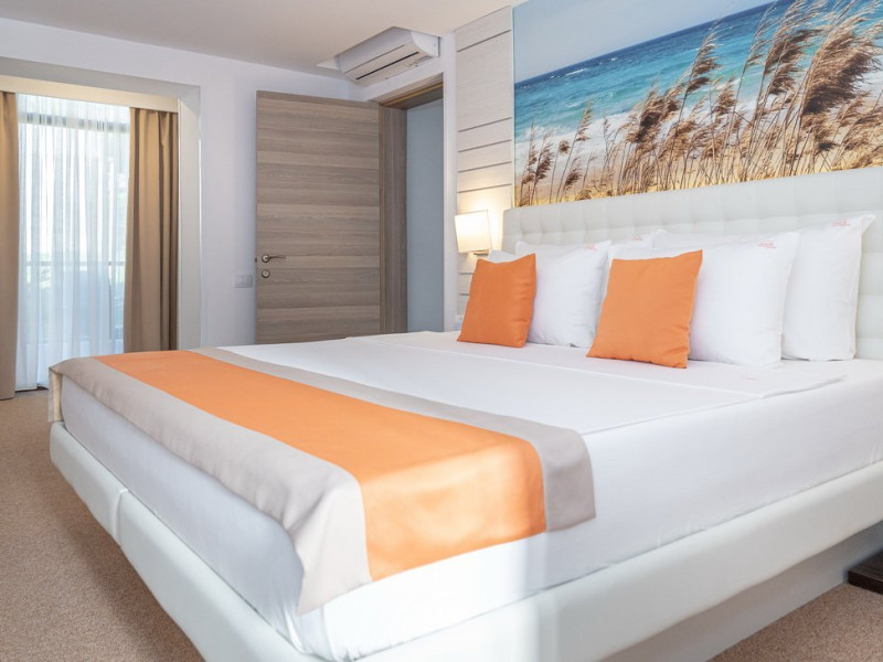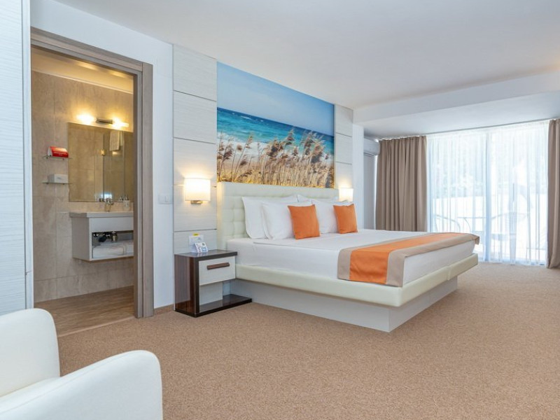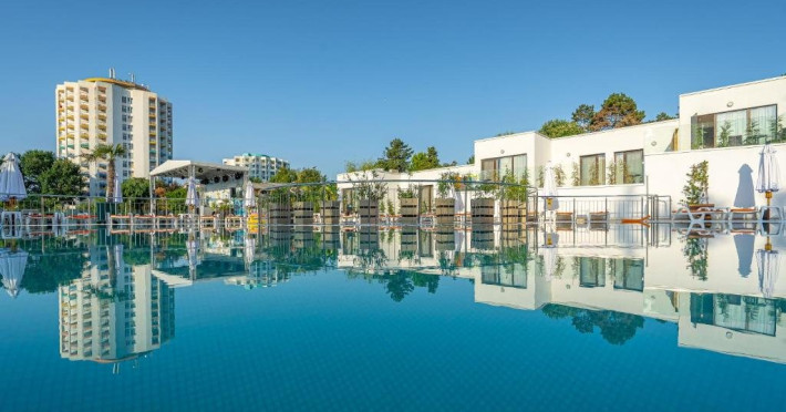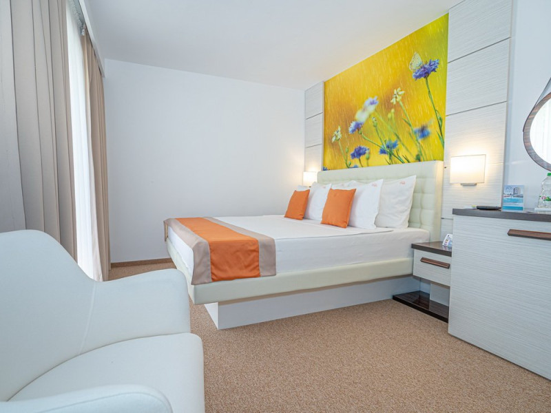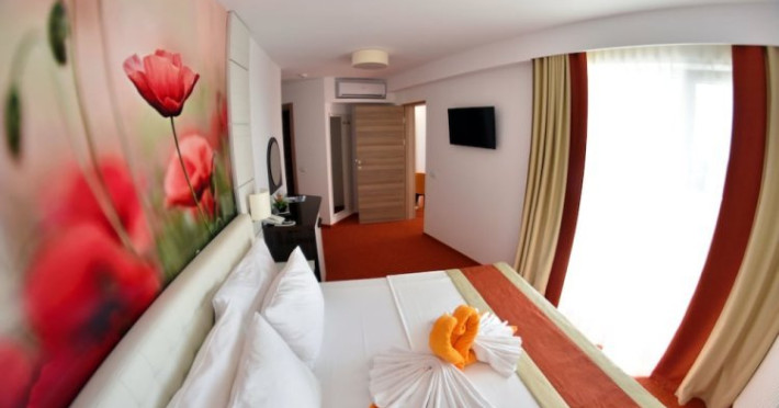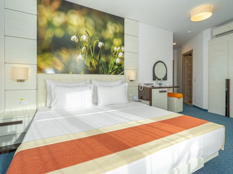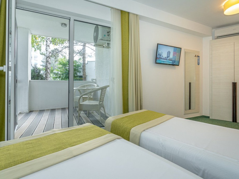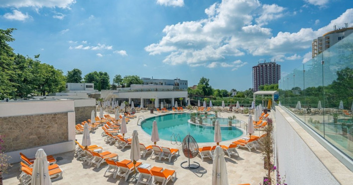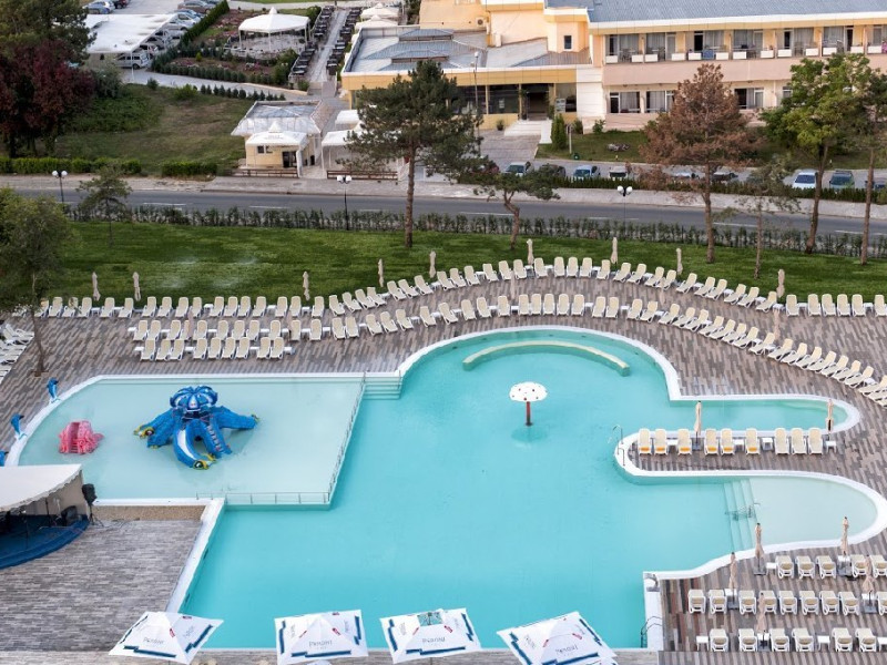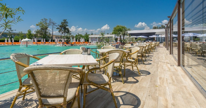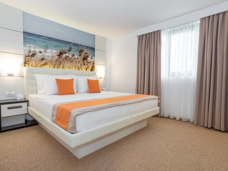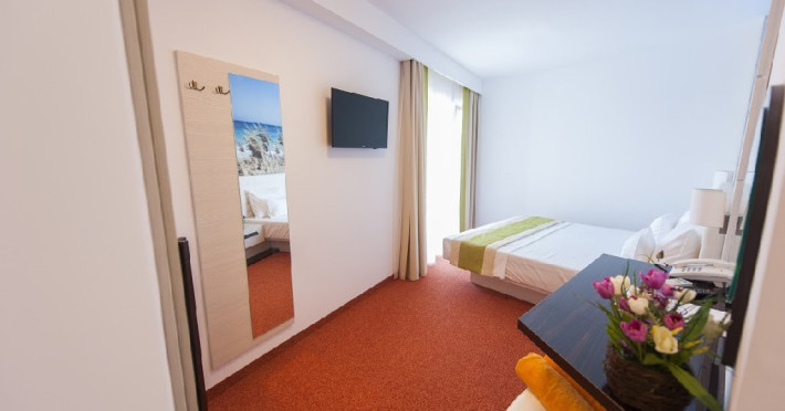 Hotelul Mera Resort dispune de plaja privata. HOTEL MERA RESORT VENUS este alcatuit din 2 corpuri de hotel - Mera Sky si Mera Blue - si un complex de 49 de vile cu accente mediteranene - Mera Villas. Cele 2 hoteluri sunt conectate printr-o receptie comuna, un spatiu larg, modern si rafinat, unde stilul si eleganta sunt in stransa legatura cu preocuparea permanenta a intregii echipe Mera pentru confortul si buna dispozitie a oaspetilor sai. Resortul este situat in centrul statiunii, la 100 m distanta de plaja Venus. Cazarea se efectueaza incepand cu ora 13:00, iar eliberarea camerelor se realizeaza pana cel tarziu la ora 11:00. Nu se accepta animale de companie. Fumatul este interzis in incinta Resortului, exceptand balcoanele camerelor si spatiile special amenajate. Va informam ca incepand cu sezonul 2021 se va incasa la check-in taxa de statiune, in valoare de 5 lei/ persoana/ zi, conform HCL 283/23.12.2020. Vor fi taxate toate persoanele cu varsta de 18 ani impliniti. Dotari si servicii Piscina principala exterioara - este una dintre cele mai frumoase din zona, avand o suprafata de 1000 mp si un design modern. Va puteti relaxa pe sezlongruile confortabile de pe marginea piscinei sau puteti profita de nenumaratele atractii acvatice: dusurile cervicale, banchetele cu hidromasaj si gheizerele, precum si Aqua vortex - acesta este special gandit pentru doritorii de senzatii tari, permite inotatorilor rezistenti sa mearga impotriva curentului sau pur si simplu sa se lase trasi de flux. Piscina pentru copii - are o adancime de 50 cm si este dotata cu un mini Aqua Park, detine o piscina cu tobogane acvatice cu 3 canale pentru cei mari. Piscina pentru copii este special amenajata astfel incat activitatile desfasurate sa beneficieze de cele mai inalte standarde de siguranta. La piscine se desfasoara pe tot parcursul zilei diverse programe: aqua gym, concursuri, spectacole si alte surprize. Piscinele secundare - ale resortului sunt situate in zona Mera Villas, o adevarata oaza de liniste, fiind optiunea ideala pentru a-ti petrece zilele insorite de vara intr-o atmosfera relaxanta. Rasfatul unei zile la piscina este o experienta in sine. Accesul este permis intre orele 08:00 - 20:00 Plaja Mera Resort - este situata la aproximativ 500 m avand nisip fin, apa curata si intrare lina in mare, dispunand de beach bar gratuit. Oaspetii Mera Resort au la dispozitie in mod gratuit sezlonguri, umbrele si masute la plaja, in limita locurilor disponibile. Restaurant - Cum experienta turistica nu poate fi niciodata completa fara a integra si latura ei culinara, restaurantele Mera Resort si Mera Villas va ofera in regim All Incluisve o gama diversificata de preparate, atat din bucataria traditional romaneasca, cat si din cea internationala. Maestrii laboratorului propriu de patiserie va vor delecta cu cele mai proaspete si gustoase produse. Pe terasa zonei centrale a complexului este amplasat barul a la carte unde va veti putea delecta, contra cost, cu o gama larga de bauturi si cocktail-uri. Parcare gratuita - cu aproximativ 450 de locuri de parcare. Locurile de parcare nu pot fi rezervare, acestea se aloca in limita disponibilitatii, resortul nu garanteaza locul de parcare.Accesul autoturismelor in parcarile Mera Hotels va fi posibil incepand cu ora 13:00. Centrul SPA Wellness Mera Resort - este zona in care iti poti rasfata toate simturile. Aici poti sa te relaxezi in saloanele de masaj si de infrumusetare, piscina interioara, in aburul de miresme imbietoare al saunei si al hammamului sau in sala de fitness dotata cu aparatura moderna. Mera Spa Wellness se intinde pe aproximativ 800 mp si este impartit in 3 zone: Wellness, Pool Thermarium si Fitness ( cu vedere la gradina Zen). Zona Wellnes cuprinde un cabinet de masaj single, un cabinet suite ( pentru terapii in cuplu), prevazut cu cada de hidromasaj dubla, cu cromoterapie si ozonoterapie, precum si dus tropical cu cascada. Cabinetul de infrumusetare este dotat cu pat electric cu masaj si infrarosii, aparat cu oxygen hiperbaric pentru terapii faciale si corporale. Zona Pool Thermarium are in componenta piscina incalzita (>28 grade) cu o suprafata de 80 mp si o adancime de 140 cm, cu cascade cervicale si inot impotriva curentului, dusuri emotionale, fantana de gheata, bazine Kneipp cu cascade cervicale ( apa are o temperatura de 17, respectiv 35 grade), sauna finlandeza ( uscata), baie de vapori ( sauna umeda), bio-sauna ( o alternativa moderna a Finish saunei), salina cu sare de Himallaya, hammam ( Ceremonial turcesc/ Ritual marocan). Toate serviciile oferite in Centru Spa Wellness sunt contra cost. Kids Club Kids Park - Mera Resort a pregatit pentru cei mai mici oaspeti ai sai o serie de experiente incantatoare, punandu-le la dispozitie alte doua spatii destinate exclusiv lor: loc de joaca in interior si un parc in aer liber, unde se pot bucura de o multime de jocuri si activitati. Printre activitatile ce se desfasoara pe parcursul intregii zile in aceste zone, amintim teatru pentru copii, parada si momente unice oferite de personajele Disney. Programul Artistic Mera - Terasa restaurantului este animata in fiecare seara de nenunmarate momente artistice, atat pentru copii, cat si pentru adulti. La Mera Resort aveti ocazia de a petree cele mai antrenante seri de vara, bucurandu-va de muzica live, dansatori salsa, ansambluri populare, cabaret, alaturi de multi ati invitati si momente-surpriza. Cu pasiune si dedicare, in fiecare an, Mera Resort da tonul bunei dispozitii estivale si va asteapta sa reveniti, de fiecare data cu aceeasi bucurie, pentru a compune impreuna cele mai frumoase povesti de vacanta. Programul de entertainment de pe Terasa Restaurantului Mera se va desfasura zilnic intre orele 19:00 - 22:30. Servicii masa: - masa se serveste in restaurantul propriu in sistem bufet suedez. In incinta restaurantului, accesul este permis doar cu o tinuta decenta, fara obiecte si accesorii de plaja. Programul de functionare al barului a la carte din zona piscin