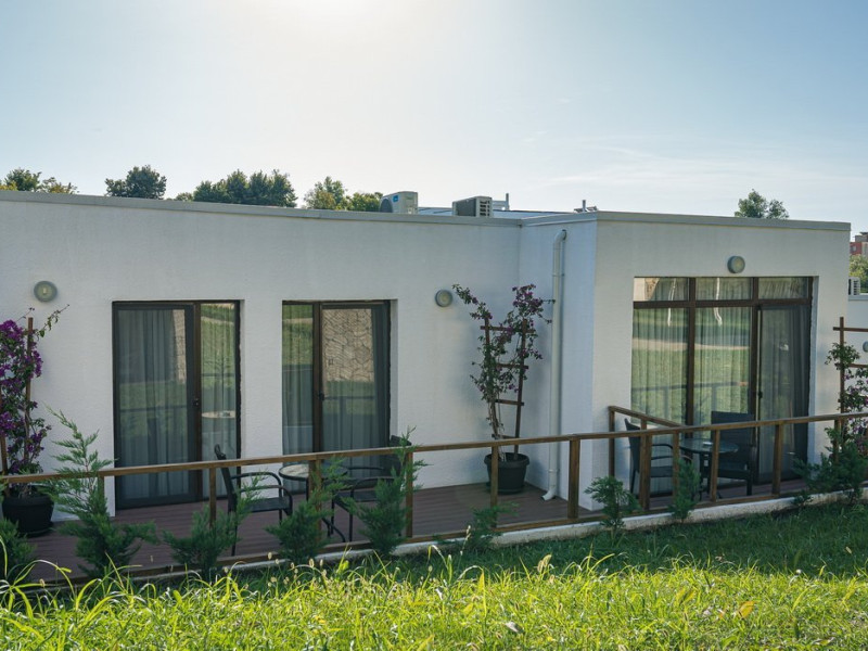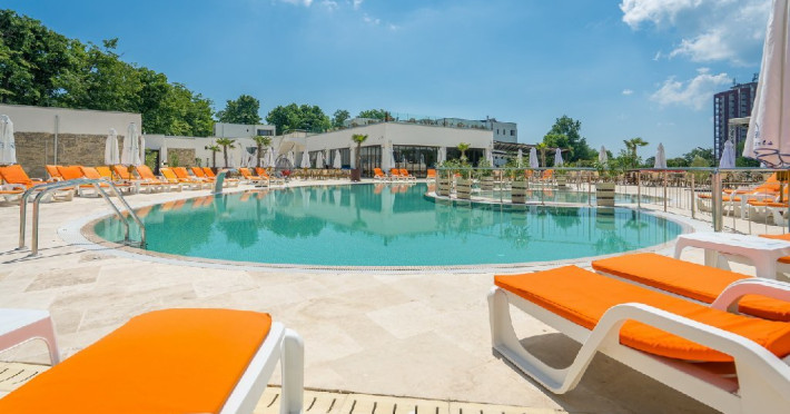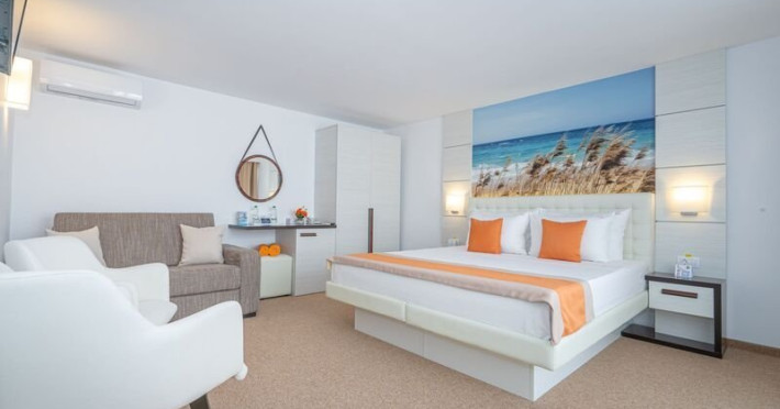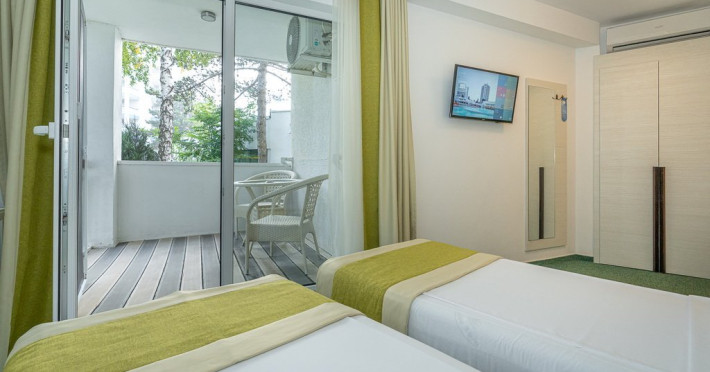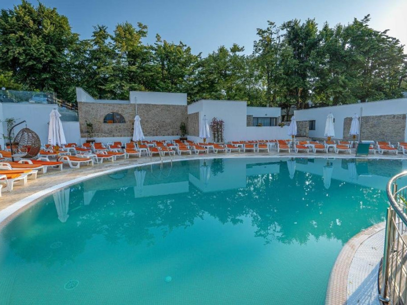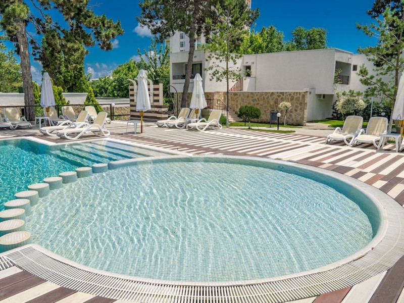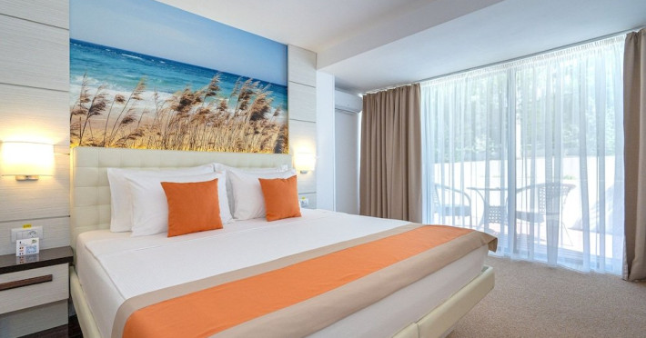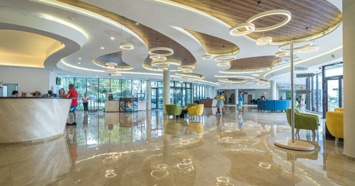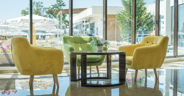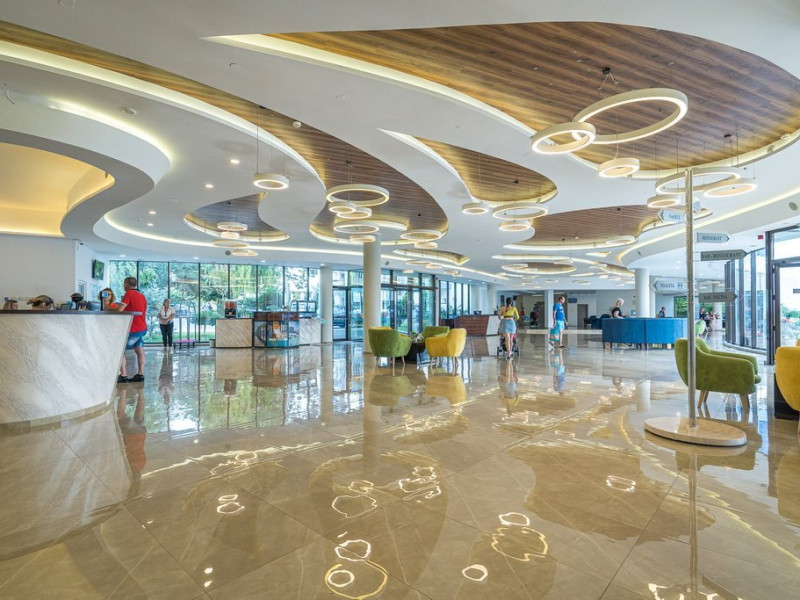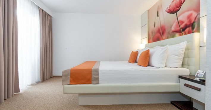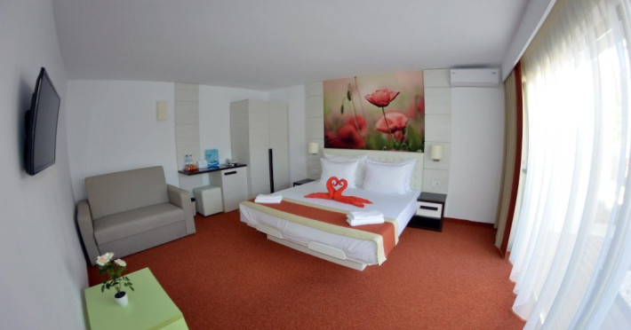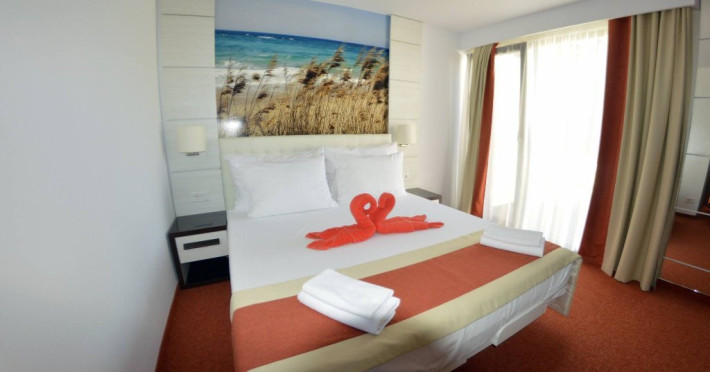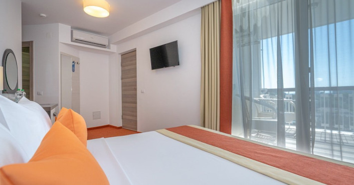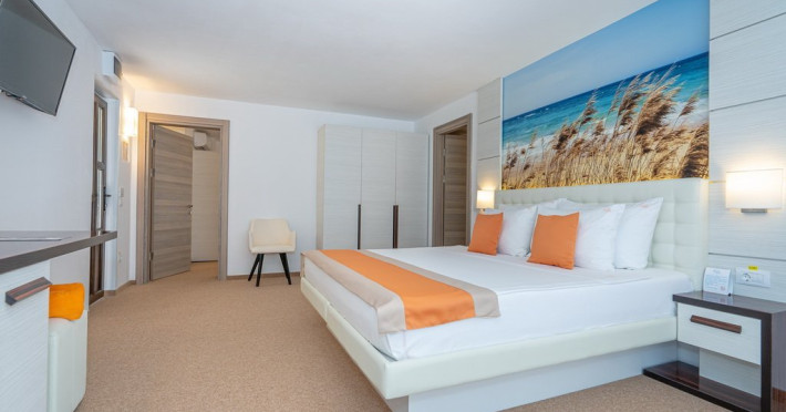 Hotelul Mera Resort dispune de plaja privata. HOTEL MERA RESORT VENUS este alcatuit din 2 corpuri de hotel - Mera Sky si Mera Blue - si un complex de 49 de vile cu accente mediteranene - Mera Villas. Cele 2 hoteluri sunt conectate printr-o receptie comuna, un spatiu larg, modern si rafinat, unde stilul si eleganta sunt in stransa legatura cu preocuparea permanenta a intregii echipe Mera pentru confortul si buna dispozitie a oaspetilor sai. Resortul este situat in centrul statiunii, la 100 m distanta de plaja Venus. Cazarea se efectueaza incepand cu ora 13:00, iar eliberarea camerelor se realizeaza pana cel tarziu la ora 11:00. Nu se accepta animale de companie. Fumatul este interzis in incinta Resortului, exceptand balcoanele camerelor si spatiile special amenajate. Va informam ca incepand cu sezonul 2021 se va incasa la check-in taxa de statiune, in valoare de 5 lei/ persoana/ zi, conform HCL 283/23.12.2020. Vor fi taxate toate persoanele cu varsta de 18 ani impliniti. Dotari si servicii Piscina principala exterioara - este una dintre cele mai frumoase din zona, avand o suprafata de 1000 mp si un design modern. Va puteti relaxa pe sezlongruile confortabile de pe marginea piscinei sau puteti profita de nenumaratele atractii acvatice: dusurile cervicale, banchetele cu hidromasaj si gheizerele, precum si Aqua vortex - acesta este special gandit pentru doritorii de senzatii tari, permite inotatorilor rezistenti sa mearga impotriva curentului sau pur si simplu sa se lase trasi de flux. Piscina pentru copii - are o adancime de 50 cm si este dotata cu un mini Aqua Park, detine o piscina cu tobogane acvatice cu 3 canale pentru cei mari. Piscina pentru copii este special amenajata astfel incat activitatile desfasurate sa beneficieze de cele mai inalte standarde de siguranta. La piscine se desfasoara pe tot parcursul zilei diverse programe: aqua gym, concursuri, spectacole si alte surprize. Piscinele secundare - ale resortului sunt situate in zona Mera Villas, o adevarata oaza de liniste, fiind optiunea ideala pentru a-ti petrece zilele insorite de vara intr-o atmosfera relaxanta. Rasfatul unei zile la piscina este o experienta in sine. Accesul este permis intre orele 08:00 - 20:00 Plaja Mera Resort - este situata la aproximativ 500 m avand nisip fin, apa curata si intrare lina in mare, dispunand de beach bar gratuit. Oaspetii Mera Resort au la dispozitie in mod gratuit sezlonguri, umbrele si masute la plaja, in limita locurilor disponibile. Restaurant - Cum experienta turistica nu poate fi niciodata completa fara a integra si latura ei culinara, restaurantele Mera Resort si Mera Villas va ofera in regim All Incluisve o gama diversificata de preparate, atat din bucataria traditional romaneasca, cat si din cea internationala. Maestrii laboratorului propriu de patiserie va vor delecta cu cele mai proaspete si gustoase produse. Pe terasa zonei centrale a complexului este amplasat barul a la carte unde va veti putea delecta, contra cost, cu o gama larga de bauturi si cocktail-uri. Parcare gratuita - cu aproximativ 450 de locuri de parcare. Locurile de parcare nu pot fi rezervare, acestea se aloca in limita disponibilitatii, resortul nu garanteaza locul de parcare.Accesul autoturismelor in parcarile Mera Hotels va fi posibil incepand cu ora 13:00. Centrul SPA Wellness Mera Resort - este zona in care iti poti rasfata toate simturile. Aici poti sa te relaxezi in saloanele de masaj si de infrumusetare, piscina interioara, in aburul de miresme imbietoare al saunei si al hammamului sau in sala de fitness dotata cu aparatura moderna. Mera Spa Wellness se intinde pe aproximativ 800 mp si este impartit in 3 zone: Wellness, Pool Thermarium si Fitness ( cu vedere la gradina Zen). Zona Wellnes cuprinde un cabinet de masaj single, un cabinet suite ( pentru terapii in cuplu), prevazut cu cada de hidromasaj dubla, cu cromoterapie si ozonoterapie, precum si dus tropical cu cascada. Cabinetul de infrumusetare este dotat cu pat electric cu masaj si infrarosii, aparat cu oxygen hiperbaric pentru terapii faciale si corporale. Zona Pool Thermarium are in componenta piscina incalzita (>28 grade) cu o suprafata de 80 mp si o adancime de 140 cm, cu cascade cervicale si inot impotriva curentului, dusuri emotionale, fantana de gheata, bazine Kneipp cu cascade cervicale ( apa are o temperatura de 17, respectiv 35 grade), sauna finlandeza ( uscata), baie de vapori ( sauna umeda), bio-sauna ( o alternativa moderna a Finish saunei), salina cu sare de Himallaya, hammam ( Ceremonial turcesc/ Ritual marocan). Toate serviciile oferite in Centru Spa Wellness sunt contra cost. Kids Club Kids Park - Mera Resort a pregatit pentru cei mai mici oaspeti ai sai o serie de experiente incantatoare, punandu-le la dispozitie alte doua spatii destinate exclusiv lor: loc de joaca in interior si un parc in aer liber, unde se pot bucura de o multime de jocuri si activitati. Printre activitatile ce se desfasoara pe parcursul intregii zile in aceste zone, amintim teatru pentru copii, parada si momente unice oferite de personajele Disney. Programul Artistic Mera - Terasa restaurantului este animata in fiecare seara de nenunmarate momente artistice, atat pentru copii, cat si pentru adulti. La Mera Resort aveti ocazia de a petree cele mai antrenante seri de vara, bucurandu-va de muzica live, dansatori salsa, ansambluri populare, cabaret, alaturi de multi ati invitati si momente-surpriza. Cu pasiune si dedicare, in fiecare an, Mera Resort da tonul bunei dispozitii estivale si va asteapta sa reveniti, de fiecare data cu aceeasi bucurie, pentru a compune impreuna cele mai frumoase povesti de vacanta. Programul de entertainment de pe Terasa Restaurantului Mera se va desfasura zilnic intre orele 19:00 - 22:30. Servicii masa: - masa se serveste in restaurantul propriu in sistem bufet suedez. In incinta restaurantului, accesul este permis doar cu o tinuta decenta, fara obiecte si accesorii de plaja. Programul de functionare al barului a la carte din zona piscin