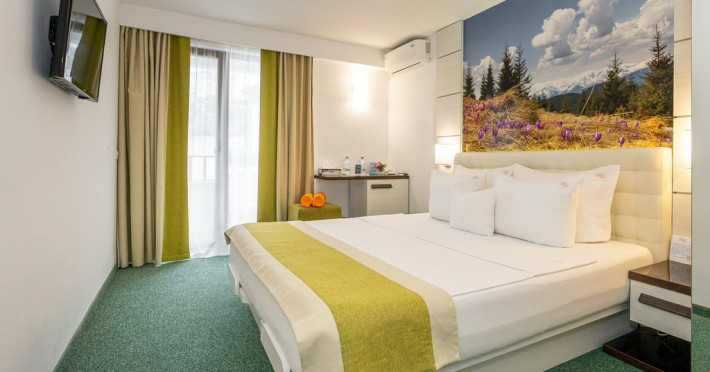 Camera dubla matrimoniala/twin cu suprafata de 15.20 mp are un pat matrimonial (180/190 cm) sau doua paturi individuale (80/190 cm).