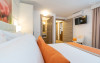 Apartamentele cu 2 dormitoare - Formate din 2 dormitoare decomandate, fiecare cu pat matrimonial (160x190 cm), baie proprie si terasa. Au aceleasi dotari si au o suprafata totala de 30 mp. Pot gazdui pana la 4 adulti. Acest tip de camera nu suporta adaugarea de pat suplimentar.