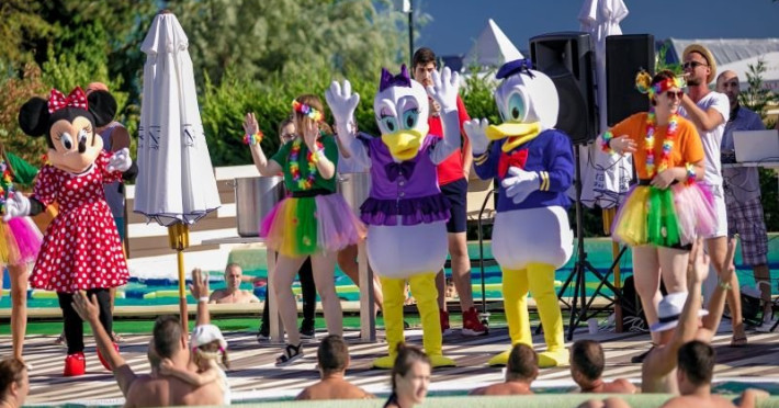 La piscine se desfasoara pe tot parcursul zilei diverse programe: aqua gym, concursuri, spectacole si alte surprize.