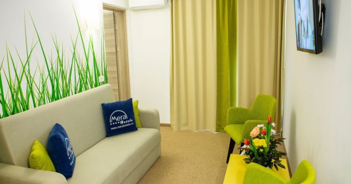 Cele 2 hoteluri sunt conectate printr-o receptie comuna, un spatiu larg, modern si rafinat, unde stilul si eleganta sunt in stransa legatura cu preocuparea permanenta a intregii echipe Mera pentru confortul si buna dispozitie a oaspetilor sai.