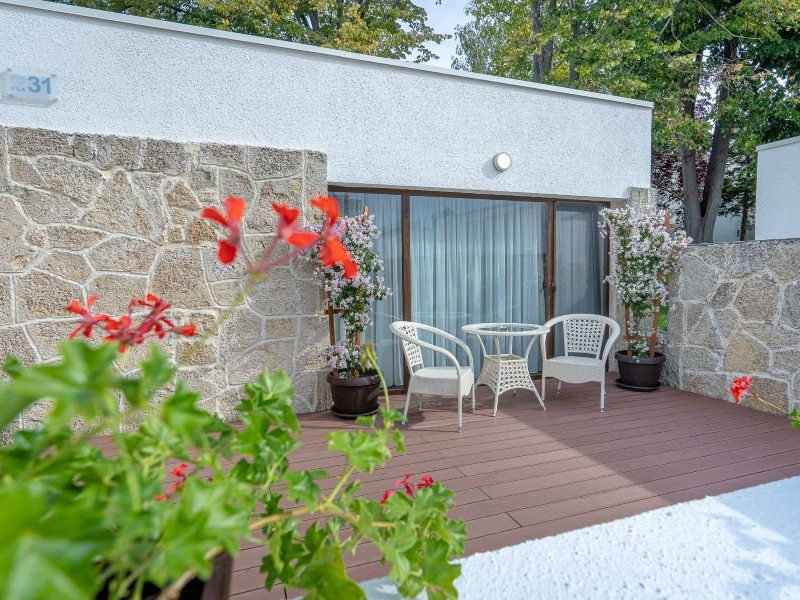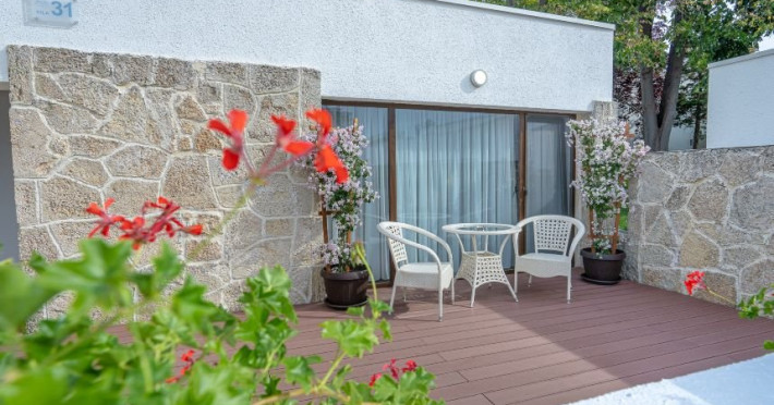 Suitele cu doua camere comunicante - Formate din 2 dormitoare comunicante, fiecare cu pat matrimonial (160x190 cm), baie proprie si terasa. Au aceleasi dotari si au o suprafata totala de 30 mp. Pot gazdui pana la 4 adulti. Acest tip de camera nu suporta adaugarea de pat suplimentar.