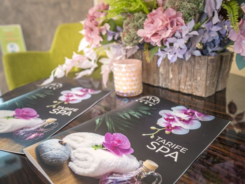 - SPA (Piscina interioara cu cascada cervicala si inot impotriva curentului, Sauna filandeza, Salina, Biosauna, Baie de vapori, Dusuri emotionale, Bazine kneipp, Cabinet masaj single si in cuplu , Cabinet cosmetic; Fantana de gheata;);
