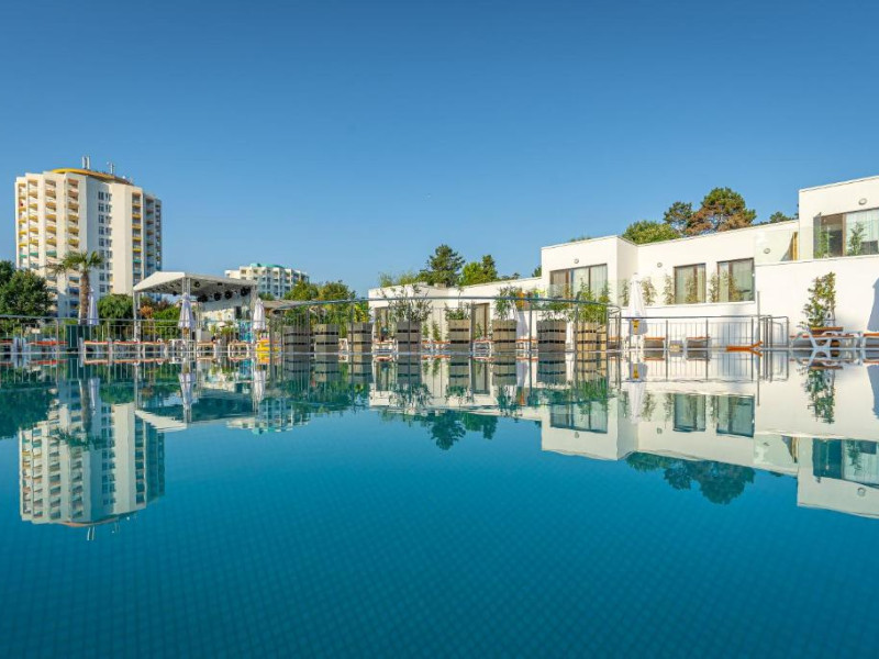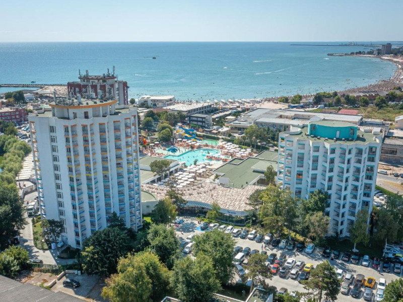 Mera Resort Venus este unul dintre cele mai indragite refugii contemporane pentru un sejur de neuitat. Distractie, aventura, intimitate si relaxare, chiar la malul Marii Negre, in tot mai apreciata statiune din Venus! Bucura-te in zilele tale de vacanta de o atmosfera primitoare si completa, datorita facilitatilor all-inclusive ale celor 2 hoteluri si 49 de vile din cadrul Mera Resort Venus, dar si de plaja cu golfuri, ape minerale sulfuroase, valuri linistite, nisip auriu, briza si soare! HOTEL ?I VILE IN STA?IUNEA VENUS CU FACILITA?I ALL INCLUSIVE Mera Resort Venus ofera oaspetilor de toate varstele facilitati all-inclusive de 4 stele pentru un sejur de neuitat! Resortul este situat pe Strada Dem Radulescu, la doar 5 minute de plaja si la doar 3 kilometri de Portul Turistic Mangalia! Iti doresti o vacanta relaxanta si linistitoare, departe de aglomeratia urbanului, sau vrei sa te bucuri de seri cu muzica si dans ori de piscine pentru toate varstele? Indiferent de modul in care ti-ai planuit zilele pline de soare si voie buna, cele 2 hoteluri (Mera Blue si Mera Sky) si 49 de vile iti ofera intocmai tot ceea ce iti doresti: camere moderne, restaurante cu delicii culinare, piscine, locuri de joaca, divertisment, centru de relaxare SPA, terapii wellness, evenimente private si privelisti fermecatoare! CE FACILITA?I GASE?TI LA HOTEL SAU IN VILELE MERA RESORT VENUS? Fie ca alegi cazare la hotel sau in cele 49 de vile mediteraneene din cadrul Mera Resort Venus, un lucru este sigur: ai parte de cele mai indragite spatii de cazare din statiunea Venus. Resortul ti-a pregatit un sejur de neuitat cu facilitati pentru copii si adulti, deopotriva. Aici toata lumea se bucura de cele mai relaxante momente, chiar la malul Marii Negre. Piscine La Mera Resort Venus vei descoperi piscine cu servicii si facilitati all-inclusive pentru cei mici si mari, deopotriva, astfel incat toata lumea se bucura de o vacanta de vara de neuitat! Rasfata-te la piscinele Mera Resort sau la piscinele din cadrul Mera Villas, pentru un plus de intimitate si destindere! Indiferent de piscina pe care o alegi, ai la dispozitie un bar all-inclusive! Restaurante Baruri Incepe fiecare dimineata din sejurul tau cu un mic dejun copios, chiar pe terasa restaurantelor Mera Resort Venus. Degusta cele mai bune preparate bazate pe retete romanesti si internationale si delecteaza-te cu cafea, ceai ori bauturi racoritoare. Tot aici gasesti cocktailuri si bauturi alcoolice intotdeauna reci si cu un gust placut de vacanta! Rasfata-te cu meniuri all-inclusive proaspete si savuroase pentru adulti si pentru copiii de toate varstele. Daca vrei sa uiti de timp in vacanta, la Mera Resort Venus ai gustari proaspete si bauturi asortate, la piscina sau la restaurant, intre principalele mese ale zilei! Kids Club Deoarece vacanta la mare inseamna voie buna, relaxare si distractie pentru oaspetii de toate varstele, la Mera Resort Venus cei mici au un loc creat special pe masura energiei lor, unde sunt mereu in centrul atentiei: Kids Club. Aici isi fac noi prieteni, sar in trambulina, isi iau avant in tobogane, tiroliana, leagane si balansoare, in compania unor animatori talentati si energici. Pe langa jocurile de exterior, in Kids Club am pregatit scene pentru spectacole, casute, corturi de joaca si activitati educativ-recreative: concursuri, teatru de papusi, jocuri video, lectii de dans si ateliere de creatie. Servicii incluse (all inclusive): Piscine pentru adulti; Umbrele si sezlonguri la piscine in limita locurilor disponibile (alocarea sezlongurilor se face in ordinea sosirii la piscina); Parcare in limita locurilor disponibile; Parc de joaca pentru copii, mini Aquapark pentru copii; Piscina pentru copii incalzita; Piscina cu tobogane acvatice – 3 canale, Teatru de vara pentru copii; Club animatie copii; Jocuri si concursuri adulti si copii (piscine, terasa); Animatori; Muzica live; Program artistic; Tenis de masa, Rummy, Table, Sah, Biliard; umbrele si sezlonguri la plaja in limita locurilor disponibile (alocarea sezlongurilor se face in ordinea sosirii la plaja); prosoape plaja/piscina disponibile in camera; Internet WIFI; Pat bebe tip tarc la cerere, in limita disponibilitatii; Beach Bar All inclusive. Servicii optionale (contra cost): SPA (Piscina interioara cu cascada cervicala si inot impotriva curentului, Sauna filandeza, Salina, Biosauna, Baie de vapori, Dusuri emotionale, Bazine kneipp, Cabinet masaj single si in cuplu , Cabinet cosmetic; Fantana de gheata;); Bar piscina a la carte; Minibar in camera Servicii de masa all inclusive (in regim bufet, oferite la restaurant): - micul dejun se serveste zilnic intre orele 7.00 - 09:30 - pranzul se serveste zilnic intre orele 13:00 - 15:00; - gustarea se serveste zilnic intre orele 10:30 – 12:00; 16:30 – 18:00 - cina se serveste zilnic intre orele 19:00-21:00 - apa plata, apa minerala, cafea si bauturi racoritoare oferite la restaurant si pe terasa intre orele 7:00 - 22:00. - vinul casei si bere draft oferite la restaurant si pe terasa intre orele 11:00 - 22:00; - lichior, vermut, vodca, coniac, oferite la restaurant in timpul mesei de pranz (13:00 – 15.00) si cina (19:00 – 21:00); Bauturile incluse in pachet nu sunt imbuteliate, acestea se servesc in pahare de unica folosinta(plastic/carton). Serviciile din ziua sosirii incep cu pranzul(13:00 – 15:00), moment in care veti primi bratara care va ofera acces la facilitatile resortului mentionate in pachetul all inclusive. Alocarea camerelor se efectueaza incepand cu ora 16:00. Check-out-ul se realizeaza cel tarziu la ora 11:00 si presupune predarea cardurilor de acces si a bratarilor. Dupa aceasta ora nu va mai fi permis accesul la facilitatile resortului.