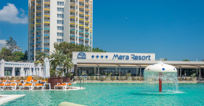Mera Resort este situat in zona centrala a statiunii Venus, in imediata apropiere a marii. Facilitati hotel: receptie non-stop, restaurant, bar, terasa, lift, camera de bagaje, piscina interioara, piscina in aer liber, piscina pentru copii (cost suplimentar), zona de plaja privata, sezlonguri sau paturi de plaja, umbrele de plaja, prosoape de plaja/piscina, masaj(cost suplimentar), baie cu abur, spa si centru wellness (cost suplimentar), aparat pentru lustruit pantofi, camere pentru nefumatori, divertisment de seara, club pentru copii, darts, tenis de masa, biliard (cost suplimentar), parcare gratuita (pazita), internet wireless gratuit. Mera Resort Venus asigura peste 800 de locuri in cele 440 de spatii de cazare, dispuse in 2 hoteluri, Mera Sky si Mera Blue si ansamblul de vile Mera Villas. Facilitati camere: telefon, minibar, seif, fotolii, baie cu cabina de dus, uscator de par, cosmetice hoteliere, cartela de acces, aer conditionat, TV LCD, balcon, uscator de rufe, prosop piscina si plaja, WI FI. Restaurantul Mera, va oferÄ o gamÄ diversificatÄ de preparate, atât din bucÄtÄria traditionalÄ româneascÄ cât Èi din cea internationalÄ, în regim All Inclusive. MaeÈtrii laboratorului propriu de patiserie vÄ vor delecta cu cele mai proaspete Èi gustoase produse. Pe terasa zonei centrale a complexului, se aflÄ situat barul Ã-La-Carte unde vÄ veÈi putea delecta, contra cost, cu o gamÄ largÄ de bÄuturi Èi cocktail-uri, printre care deja celebrul Cocktail Mera Special. Mera Resort a pregÄtit pentru cei mai mici oaspeÈi ai sÄi o serie de experienÈe încântÄtoare, punându-le la dispoziÈie douÄ spaÈii destinate exclusiv lor, un loc de joacÄ Ã®n interior Èi un parc în aer liber, unde se pot bucura de o mulÈime de jocuri Èi activitÄÈi. Printre activitÄÈile ce se desfasoarÄ pe parcursul întregii zile, amintim: concursurile Èi competiÈiile, pictura, parada costumelor Èi momentele unice oferite de personajele Disney.Datorita dinamicitatii domeniului disponibilitatea ofertelor se modifica de la un moment la altul. De aceea ofertele sunt valabile in limita locurilor disponibile. Agentia nu este responsabila pentru eventualele neconcordante care pot aparea intre informatiile privind tarifele si alte detalii din site si informatiile primite in agentie. In aceste cazuri vor avea prioritate, intotdeauna, informatiile primite in agentie.