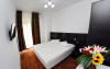 Apartamentele au in dotare 2 dormitoare cu pat matrimonial (160x200), hol si baie proprie cu cabina de dus. Apartamentele standard nu au balcon. Apartamentele cu terasa comuna sunt situate la parter si au usa ce desparte ce 2 dormitoare.