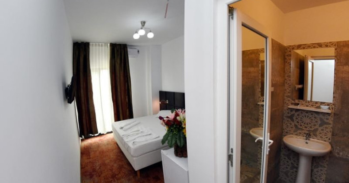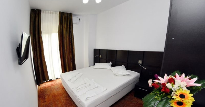 Camerele duble au pat matrimonial (180x200), baie proprie cu cabina de dus, dulap pentru haine, televior, minibar, aer conditionat, internet wireless. O parte din camere au balcon sau terasa comuna, camerele duble standard nu au balcon. Camerele duble cu terasa comuna sunt situate la parter.