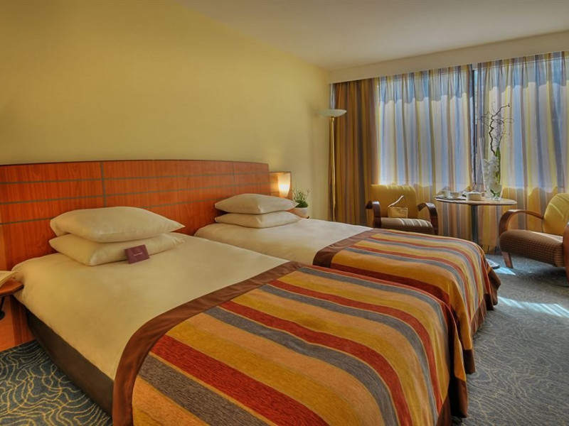 Aer conditionat, TV satelit, minibar, seif, radio, conexiune internet, uscator de par. Hotelul dispune de 198 camere.