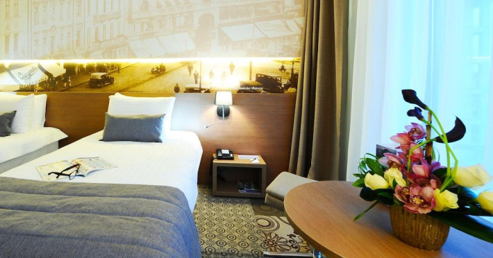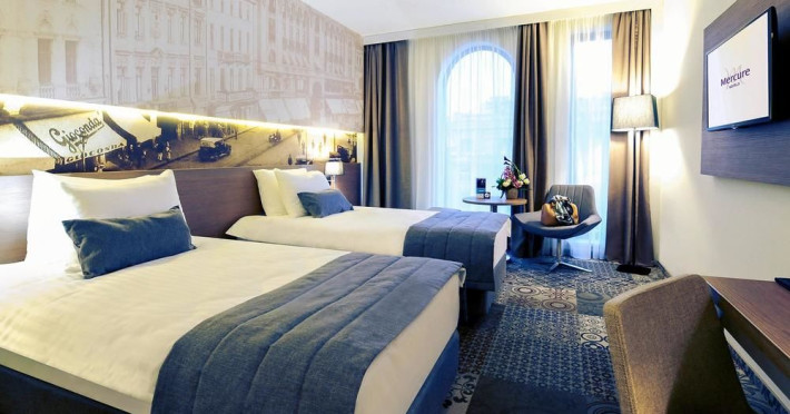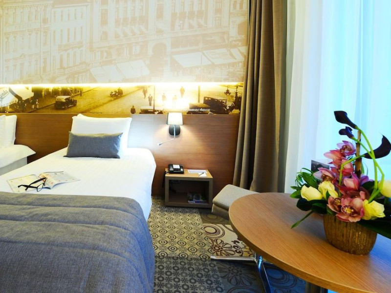 Centrally located near Calea Victoriri and the Romanian Atheneum.Medium in size, well decorated and furnished with Novotel style from the light colours to the comfortable chairs. Bathrooms are also medium in size and provides all amenities expected from such a category.RESTAURANT. SYMPHONY RESTAURANT and BAR - From lunch to dinner, we provide you tasty options. You will definitely enjoy our symphony of colors and tastes, based on healty ingredients. Trendy offer comes along with special service.This is a modern building.Large and modernWhether you travel for business or leisure, explore the Romanian capital from your favorite host, Mercure Bucharest City Center. We are in a prime location in the heart of the city, near all main attractions, such as Old Town Lipscani, Romanian Athenaeum,Revolution Square or the former Royal Palace. Public transportation at walking distance and easy access to the business district. Enjoy the refined and soft atmosphere of our restaurant, bar and terrace. Free WiFi, Fitness Center on site, parking option.City tax is not included and should be paid directly at the hotel.Datorita dinamicitatii domeniului disponibilitatea ofertelor se modifica de la un moment la altul. De aceea ofertele sunt valabile in limita locurilor disponibile. Agentia nu este responsabila pentru eventualele neconcordante care pot aparea intre informatiile privind tarifele si alte detalii din site si informatiile primite in agentie. In aceste cazuri vor avea prioritate, intotdeauna, informatiile primite in agentie.