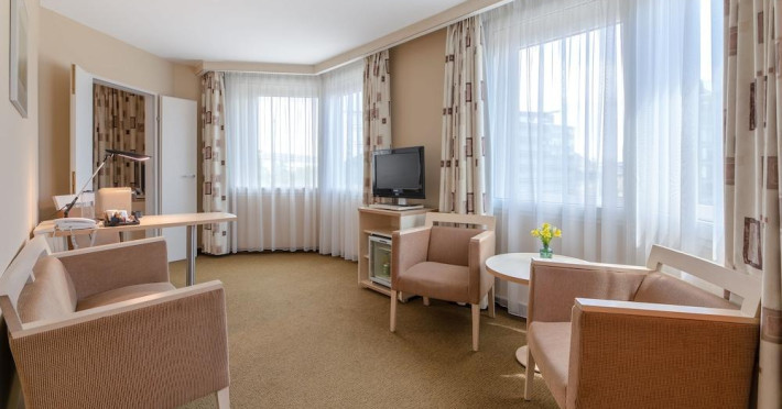 This 4 star hotel is located in the city centre of Budapest and was established in 1990. It is close to the Nemzeti Museum and the nearest station is Kalvin Square. The Hotel has a restaurant, 2 bars, a conference room, a coffee shop and an indoor swimming pool. All 416 rooms are equipped with minibar, hairdryer, safe and air conditioning.Datorita dinamicitatii domeniului disponibilitatea ofertelor se modifica de la un moment la altul. De aceea ofertele sunt valabile in limita locurilor disponibile. Agentia nu este responsabila pentru eventualele neconcordante care pot aparea intre informatiile privind tarifele si alte detalii din site si informatiile primite in agentie. In aceste cazuri vor avea prioritate, intotdeauna, informatiile primite in agentie.