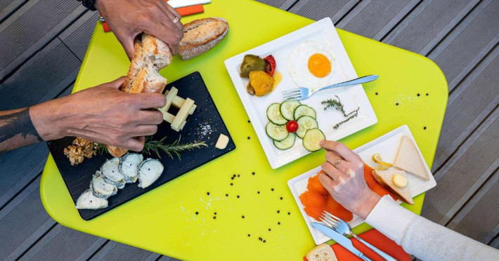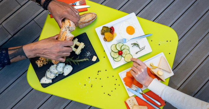 Hotelul servește mic dejun tip bufet zilnic. La cerere, puteți să savurați micul dejun in cameră. Barul SpeakArt al hotelului are terasă si serveste gustări si băuturi.