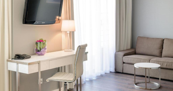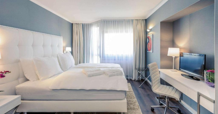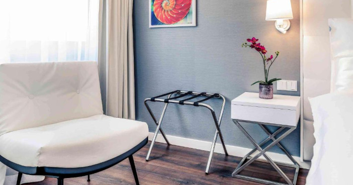 Sunt disponibile 78 camere. Fiecare cameră dispune de minibar și mașină pentru preparare cafea sau ceai. În camere există baie cu duș ce are în dotare foehn și articole de toaletă gratuite. Camerele luminoase de la Mercure Raphael sunt dotate cu aer condiționat și Tv cu canale prin satelit. Oaspeții au acces gratuit la serviciul Wi-fi în camere.