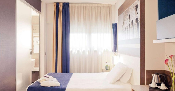 Camerele sunt dotate cu TV LCD cu canale prin satelit, aer condiționat și minibar. Unele camere oferă vedere la Colosseum.