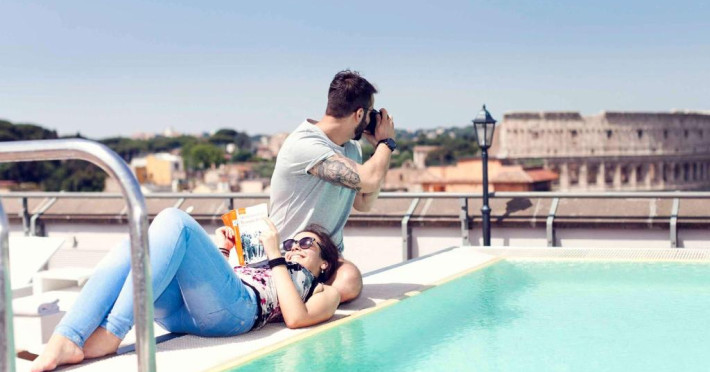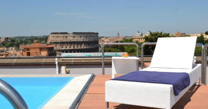 Mercure Roma Centro Colosseo pune la dispoziție camere moderne, WiFi gratuit, o terasă pe acoperiș și piscină sezonieră cu vedere la Colosseum. Acest hotel se află la 400 de metri de Colosseum.