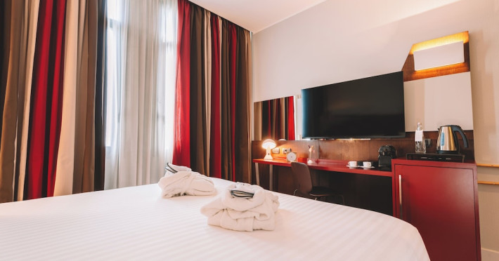 Enjoy recreation amenities such as a fitness center or take in the view from a rooftop terrace. This hotel also features complimentary wireless internet access, a television in a common area, and tour/ticket assistance.lt;stronggt;Property Locationlt;/stronggt;lt;pgt;With a stay at Mercure Roma Piazza Bologna, youapos;ll be centrally located in Rome, a 10-minute walk from Villa Torlonia and 11 minutes by foot from University of Roma-La Sapienza. This eco-certified hotel is 1.1 mi (1.8 km) from Luiss University of Rome and 2 mi (3.2 km) from Via Veneto.lt;brgt; Distances are displayed to the nearest 0.1 mile and kilometer. lt;br /gt; lt;pgt;Piazza Bologna - 0.4 km / 0.3 mi lt;br /gt; General Command of the Guardia di Finanza - 0.7 km / 0.4 mi lt;br /gt; Villa Torlonia - 0.8 km / 0.5 mi lt;br /gt; University of Roma-La Sapienza - 0.9 km / 0.6 mi lt;br /gt; Via Nomentana - 1 km / 0.6 mi lt;br /gt; Luiss University of Rome - 1.2 km / 0.7 mi lt;br /gt; Umberto I Policlinic of Rome - 1.3 km / 0.8 mi lt;br /gt; Via XX Settembre - 1.7 km / 1.1 mi lt;br /gt; Via Marsala - 2.2 km / 1.4 mi lt;br /gt; Piazza della Repubblica - 2.5 km / 1.5 mi lt;br /gt; Via Nazionale - 2.5 km / 1.5 mi lt;br /gt; Borghese Gallery - 2.6 km / 1.6 mi lt;br /gt; Quirinale - 2.7 km / 1.7 mi lt;br /gt; Teatro dellapos;Opera di Roma - 2.8 km / 1.7 mi lt;br /gt; Piazza Santa Maria Maggiore - 2.9 km / 1.8 mi lt;br /gt; lt;/pgt;lt;pgt;The nearest airports are:lt;br /gt;Ciampino Airport (CIA) - 25.1 km / 15.6 milt;br /gt; Fiumicino - Leonardo da Vinci Intl. Airport (FCO) - 51.3 km / 31.9 milt;br /gt; lt;/pgt;lt;pgt;The preferred airport for Mercure Roma Piazza Bologna is Fiumicino - Leonardo da Vinci Intl. Airport (FCO). lt;/pgt;lt;brgt; lt;stronggt;Roomslt;/stronggt;lt;pgt;Make yourself at home in one of the 113 guestrooms featuring minibars and LED televisions. Complimentary wireless internet access keeps you connected, and satellite programming is available for your entertainment. Private bathrooms with bathtubs or showers feature complimentary toiletries and bidets. Conveniences include phones, as well as safes and desks.lt;pgt; lt;stronggt;Dininglt;/stronggt;lt;pgt;Grab a bite from the snack bar/deli, or stay in and take advantage of the hotelapos;s room service (during limited hours). Quench your thirst with your favorite drink at the bar/lounge. Full breakfasts are served on weekdays from 7:00 AM to 10:00 AM and on weekends from 7:00 AM to 10:30 AM for a fee.lt;pgt; lt;stronggt;Business, Other Amenitieslt;/stronggt; lt;pgt;Featured amenities include a computer station, dry cleaning/laundry services, and a 24-hour front desk. Planning an event in Rome? This hotel has 420 square feet (39 square meters) of space consisting of conference space and meeting rooms. Self parking (subject to charges) is available onsite.lt;pgt;Datorita dinamicitatii domeniului disponibilitatea ofertelor se modifica de la un moment la altul. De aceea ofertele sunt valabile in limita locurilor disponibile. Agentia nu este responsabila pentru eventualele neconcordante care pot aparea intre informatiile privind tarifele si alte detalii din site si informatiile primite in agentie. In aceste cazuri vor avea prioritate, intotdeauna, informatiile primite in agentie.