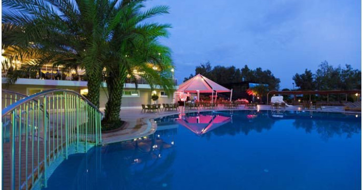 Facilitati camere: Hotelul are un numar total de 330 camere in cladirea principala si in vile: camere Standard (24mp, un dormitor, o baie, max.2+1pax, enele camere au si paturi suprapuse si pot accepta 2+2pax), camere Hotel Family (45mp, doua dormitoare, o baie, max.4pax), camere Club Family 1 (doua dormitoare, unul cu pat French si unul cu paturi suprapuse, o baie, max.4pax), camere Club Family 2 (trei dormitoare, unul cu pat matrimonial, al doilea cu doua paturi single si al treilea cu paturi suprapuse, o baie, max.6pax). Toate camerele au baie privata cu dus si uscator de par, aer conditionat, telefon direct, mini bar (apa si bauturi racoritoare numai la sosire, apoi realimentat zilnic numai cu apa), seif, parchet laminat, TV prin satelit, balcon.