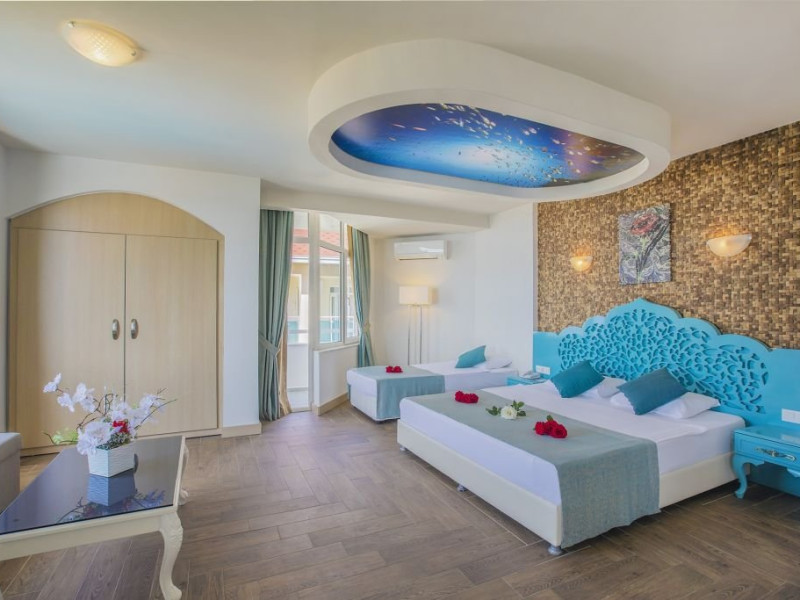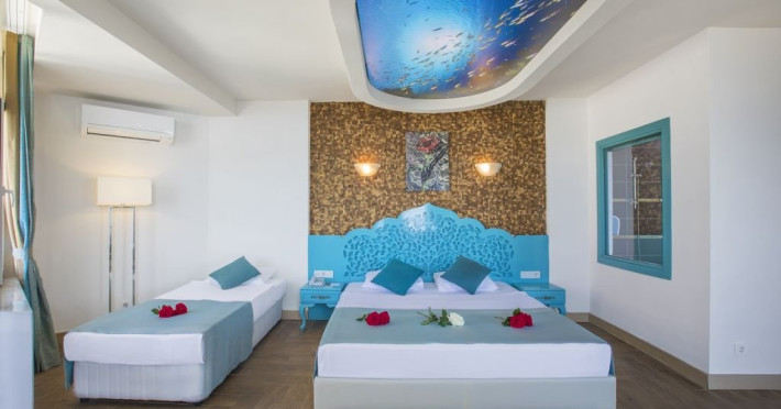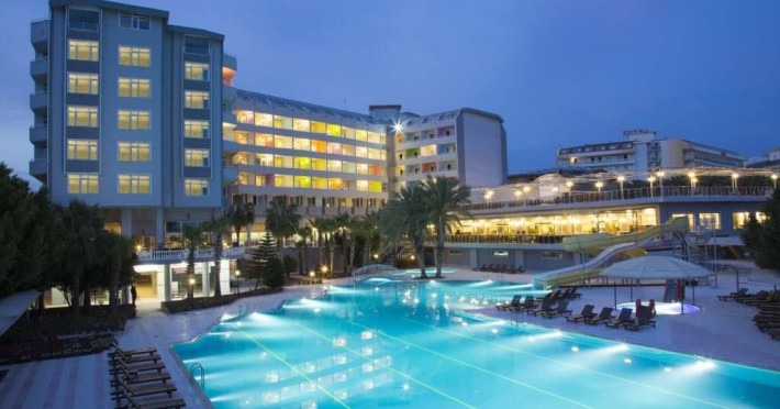 Facilitati hotel: Restaurant principal tip bufet, restaurante Ala Carte: turcesc si pescaresc, bar in Lobby, snack bar la piscina, bar pe plaja. Contra cost: servicii medicale, babysitting, spalatorie, telefon, fax, coafor, magazine. Conexiunea la internet WI- FI este disponibila gratuit in camere si in zona lobby. . Piscine exterioare si piscina interioara pentru adulti si copii, tobogane, baie turceasca, sauna, baie de aburi, centru fitness, tenis de masa, volei pe plaja. Contra cost: masaj, tratamentele in Beauty salon, biliard, sporturi nautice.Se organizeaza programe de divertisment si diferite competitii in timpul zilei, seara spectacole; Mini club pentru copii cu programe diversificate.