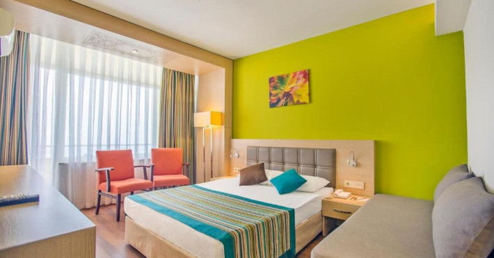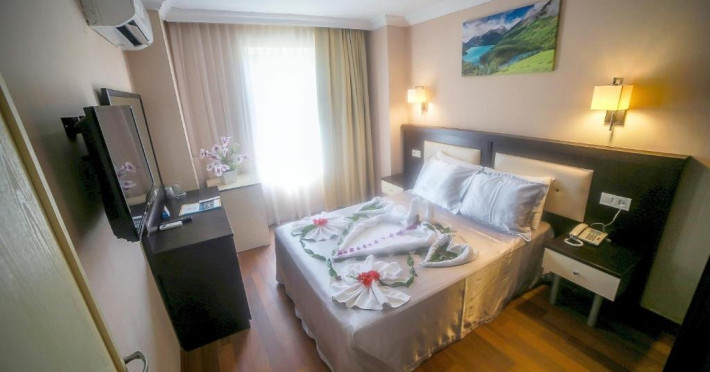 Descriere: Hotelul situat pe una dintre faimoasele statiuni turcesti, este la doar 40 de minute de mers pe jos pana in centrul orasului Alanya, aproape de mijloacele de transport in comun si ofera o plaja privata cu sezlonguri si umbrele gratuite.Localizare: Hotelul este situat la 33 km distanta de Alara Grand Bazar, 3 km de centrul orasului Alanya, 46 km de aeroportul Gazipasa Alanya si 124 km de Antalya Airport.
