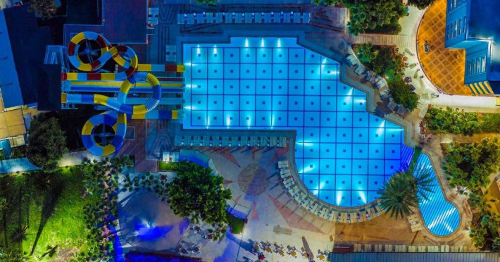Facilitati hotel: Hotelul pune la dispozitia turistilor: receptie 24h, restaurant a la carte, bar, snack bar, pool bar, piscina, aqua parc, spa cu sauna, baie turceasca, masaj, centru fitness, tenis de masa, tenis de camp, darts, loc de joaca pentru copii, miniclub pentru copii, programe de divertisment, competitii, spectacole, plaja privata cu sezlonguri si umbrele gratuite.