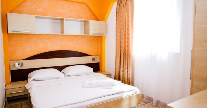 - apartamente cu 2 camere dotate cu pat dublu, TV, minibar, grup sanitar propriu. (2 apartamente au balcon si aer conditionat si 3 apartamente nu au balcon si aer conditionat).