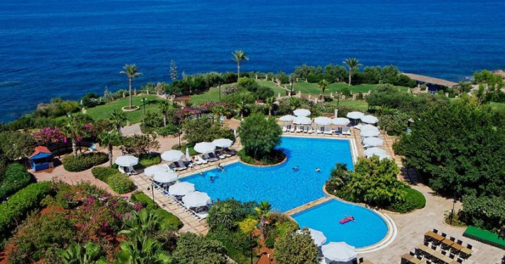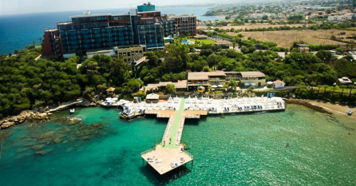 Merit Crystal Cove Hotel oferă simultan priveliști impresionante la munte și la mare. Situat într-un golf retras, cu o plajă privată cu nisip auriu, hotelul însuși este proiectat și mobilat cu grijă, completat de zone de vegetație luxuriantă și ferestre mari din sticlă, oferind o atmosferă mediteraneană primitoare.Descriere hotel
