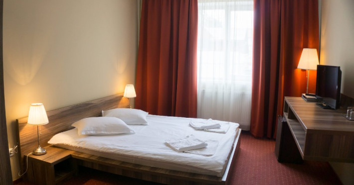 Camerele spatioase si mobilate cu gust ofera oaspetilor un mediu relaxant. Camerele hotelului tip Twin si Double pot fi rezervate in dou categorii de preturi si se pot oferi, de asemenea, solutii convenabile familiilor. Restaurantul hotelului completeaza gama serviciilor oferite cu preparate traditionale, specifice zonei. Totodat, restaurantul este potrivit organizrii de evenimente multiple, intalniri de afaceri dar si pentru primirea grupurilor diverse. Miercurea Ciuc si imprejurimile sale extinse ofera numeroase atractii pentru vizitatori, indiferent daca sunt interesati de monumente istorice sau atractii naturale. Gama de oferte turistice se completeaza cu o multitudine de programe culturale, evenimente sportive si alte tipuri de evenimente, care ofera vizitatorilor posibilitti variate de petrecere a sederii.Datorita dinamicitatii domeniului disponibilitatea ofertelor se modifica de la un moment la altul. De aceea ofertele sunt valabile in limita locurilor disponibile. Agentia nu este responsabila pentru eventualele neconcordante care pot aparea intre informatiile privind tarifele si alte detalii din site si informatiile primite in agentie. In aceste cazuri vor avea prioritate, intotdeauna, informatiile primite in agentie.