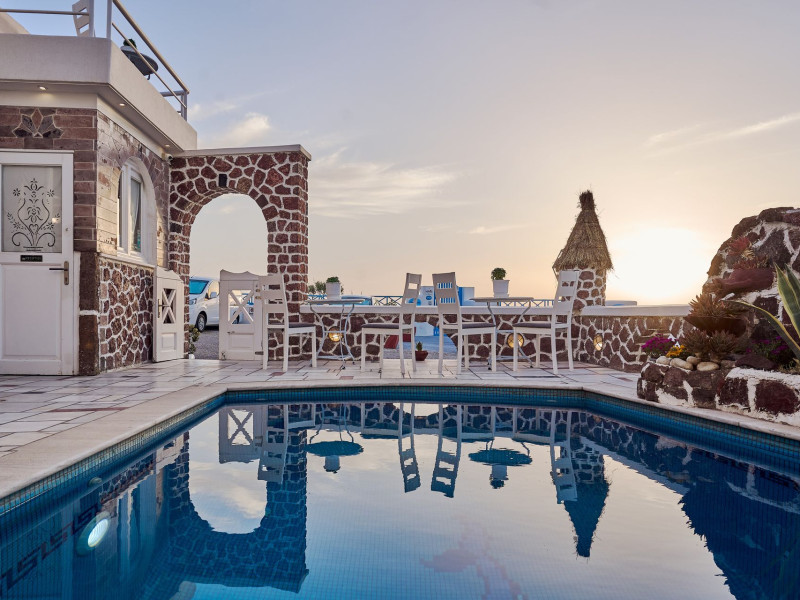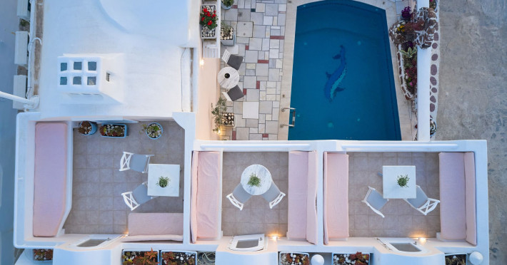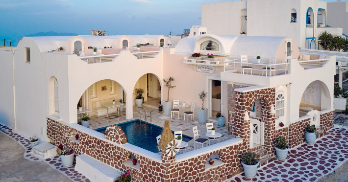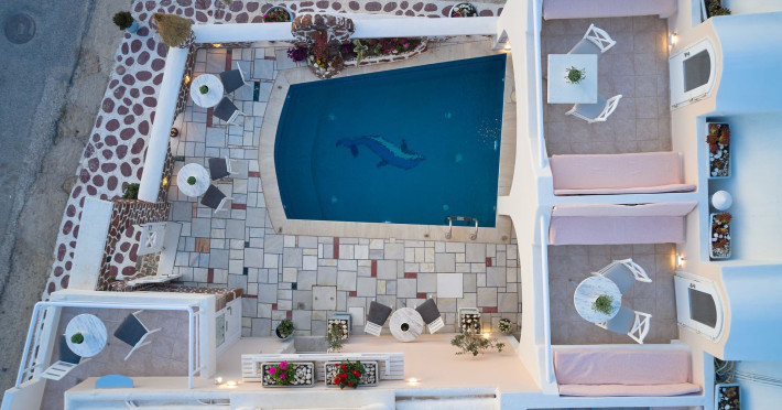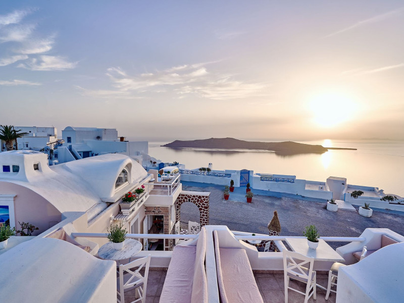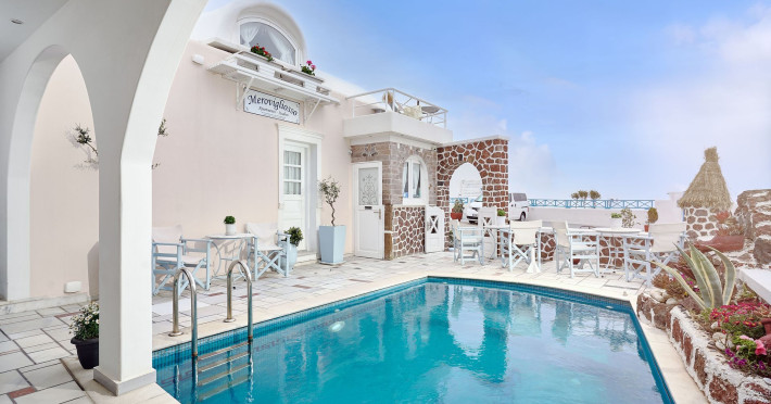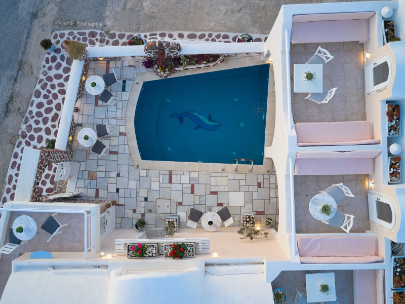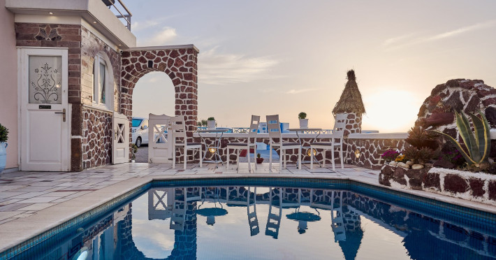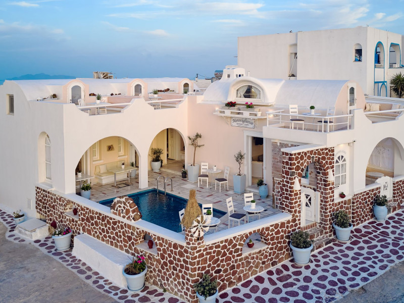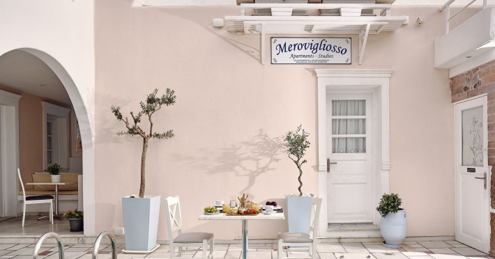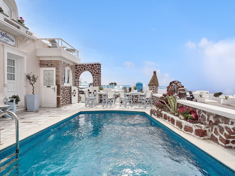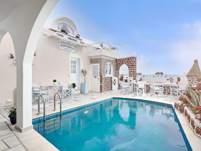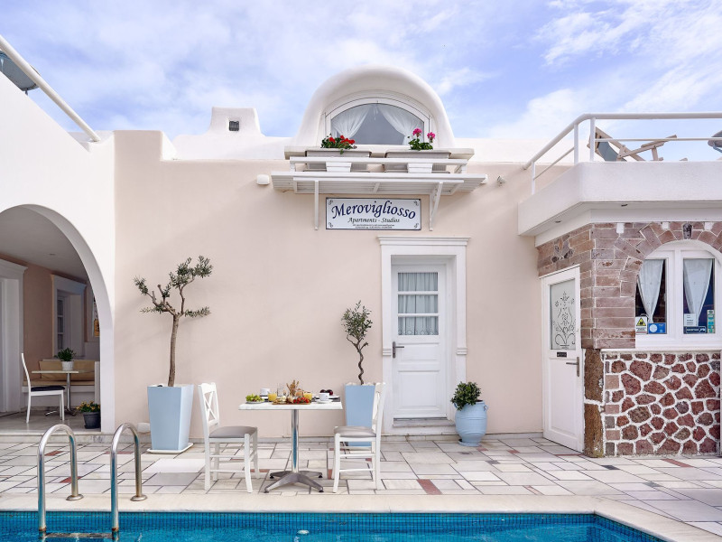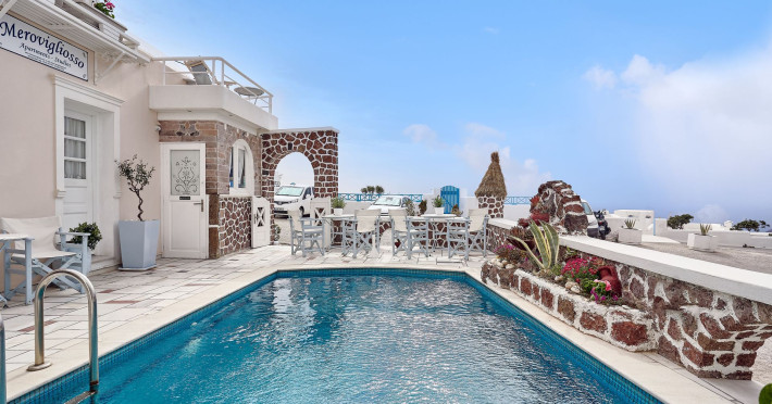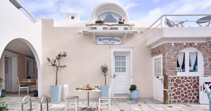 Merovigliosso Apartments in Santorini can be found overlooking the Caldera in Imerovigli, the highest village on the island.Ideal located Apartments complex on the caldera cliffs and Fira town. Spacious, fully equipped apartments at reasonable price.The Aparthotel is perfect for families and couples alike.Peaceful and relaxing with plenty of facilities within easy reach.The complex has an extraordinary commitment to art and environment.The Aparthotel offers a small swimming pool with sunbathing area and partial views of the Caldera and Aegean Sea.Guest have free access to Wi-Fi.The complex features air-conditioned studios and apartments with sea view balconies.Each has a fully equipped kitchen, including a coffee machine and a fridge.A continental breakfast is included in the price and can be served on your private balcony/veranda.Merovigliosso is close to shops and Santorini's capital, Fira. The bus station is just 150m from the hotel.Merovigliosso Apartments in Santorini can be found overlooking the Caldera in Imerovigli, the highest village on the island.Ideal located Apartments complex on the caldera cliffs and Fira town. Spacious, fully equipped apartments at reasonable price.The Aparthotel is perfect for families and couples alike.Peaceful and relaxing with plenty of facilities within easy reach.The complex has an extraordinary commitment to art and environment.The Aparthotel offers a small swimming pool with sunbathing area and partial views of the Caldera and Aegean Sea.Guest have free access to Wi-Fi.The complex features air-conditioned studios and apartments with sea view balconies.Each has a fully equipped kitchen, including a coffee machine and a fridge.A continental breakfast is included in the price and can be served on your private balcony/veranda.Merovigliosso is close to shops and Santorini's capital, Fira. The bus station is just 150m from the hotel.
