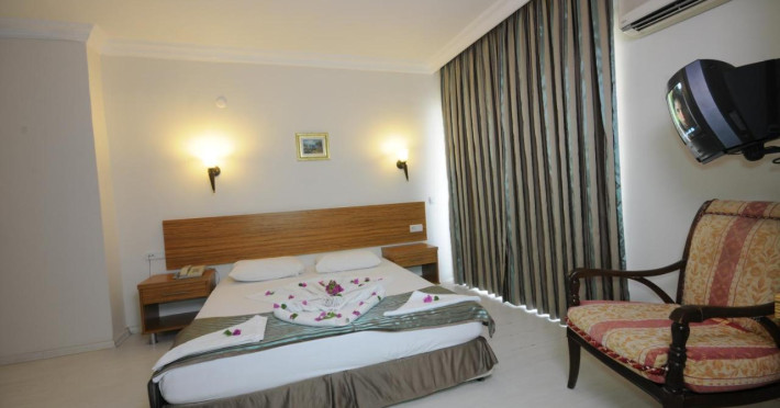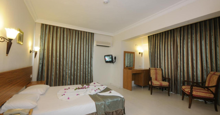 Localizare: Hotelul este situat în apropiere de Marmaris Public Beach și la o distanță de 49 km față de Dalaman Airport. Facilități hotel: 2 piscine, acces imediat la plajă, camere de familie, WiFi gratuit inclus, transfer de la și/sau la aeroport, spa și centru de wellness, parcare gratuită, sală de fitness, bar, zonă de plajă privată. Dotări camere: balcon, vedere la grădină, aer condiționat, baie privată, TV cu ecran plat, terasă, Minibar. Servicii contra cost: serviciu de transfer, serviciu de curățătorie și călcătorie, snorkelling, scufundări, facilități sporturi nautice, pescuit, echipament tenis, biliard, masaj, sală fitness, spa și centru wellness, saună, jacuzzi. IMPORTANT: Descrierea hotelului se bazează pe detaliile disponibile la momentul pregătirii tarifelor pentru sezonul turistic ce urmează a se desfășura și are caracter pur informativ. Hotelul poate aduce modificări de structură, denumiri camere, tip servicii incluse/neincluse și altele, fără a notifica în prealabil. Pentru informațiile oficiale vă rugăm să consultați website-ul hotelului.Datorita dinamicitatii domeniului disponibilitatea ofertelor se modifica de la un moment la altul. De aceea ofertele sunt valabile in limita locurilor disponibile. Agentia nu este responsabila pentru eventualele neconcordante care pot aparea intre informatiile privind tarifele si alte detalii din site si informatiile primite in agentie. In aceste cazuri vor avea prioritate, intotdeauna, informatiile primite in agentie.