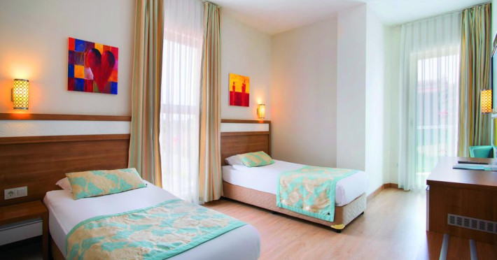 Hotelul dispune de restaurant principal tip bufet, baruri la piscina, beach bar intre 10:00 – 17:00, lobby bar, piscina pentru adulti si copii, tobogane cu apa, mini club pentru copii cu varste cuprinse intre 4 – 12 ani, centru fitness, baie turceasca, sauna, tenis de masa. Servicii contra cost: masaj, biliard, jocuri pe calculator, sporturi nautice, asistenta medicala, spalatorie si curatatorie, telefon, fax, internet cafe si jocuri pe calculator, rent a car, magazine. Programe de divertisment soft in timpul zilei; seara muzica live de doua ori pe saptamana. Wi-Fi gratuit in lobby si camere. Plaja privata, de nisip. Sezlonguri, umbrele gratuit. Prosoape de plaja cu garantie.