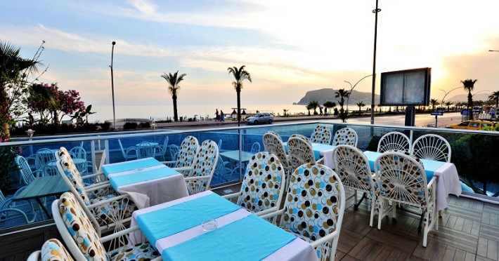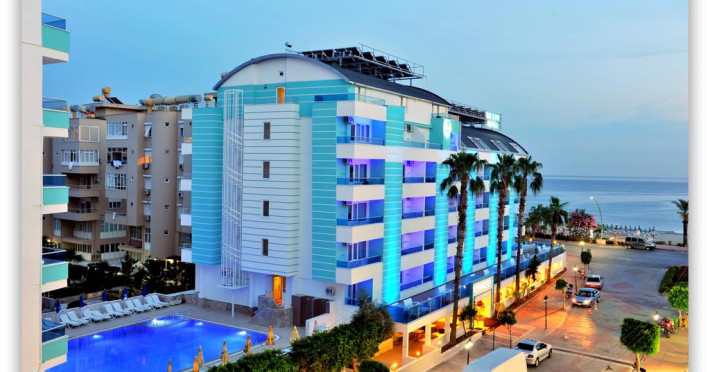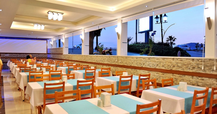 Hotelul detine un restaurant de tip bufet cu vedere la mare, ce ofera preparate din bucataria turceasca si international pentru micul dejun si cina. Exista piscine exterioare pentru adulti si copii, un salon de spa si masaj, salon de infrumusetare, sala de fitness, baie turceasca, sauna. Se organizeaza si divertisment de seara si club pentru copii. Pe plaja sunt disponibile sezlonguri, iar oaspetii au la dispozitie o sala de jocuri cu TV, tenis de masa si darts. In zonele publice este disponibil acces gratuit la Wi-fi.