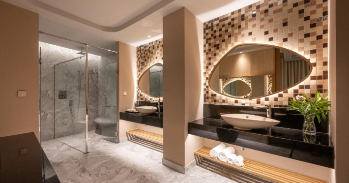 Fiecare este dotată cu facilități de 5 stele și decor elegant. Poftă de distracție? Sari in piscina noastră uriașă cu formă liberă și fă un pic. Fie că ești aici pentru dragoste, familie sau prieteni, aici se intamplă magia. Simțiți briza Andamanului pe piele sau prindeți serviciul nostru gratuit de transfer la plajă.