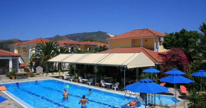 Amplasată în Kalamaki (Zakynthos), la 200 m de plaja Kalamaki, Metaxa este o proprietate de 3 stele care oferă o piscină în aer liber, terasă cu șezlonguri și umbrele de soare și unități de cazare cu aer condiționat. Proprietatea are servicii de închirieri auto. Se oferă acces gratuit la internet Wi-fi în spațiile publice. Parcarea este posibilă pe stradă, în imediata apropiere a proprietății.